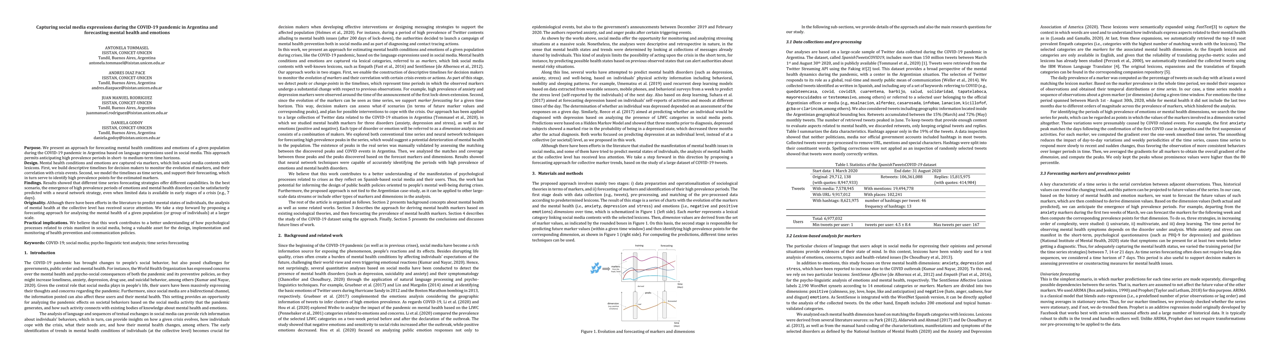 This study develops a method to forecast mental health conditions and emotions in Argentina during the COVID-19 pandemic using social media language expressions. By modeling these expressions as time series, the approach can predict high prevalence periods, even with limited early data, offering valuable insights for health policy planning.