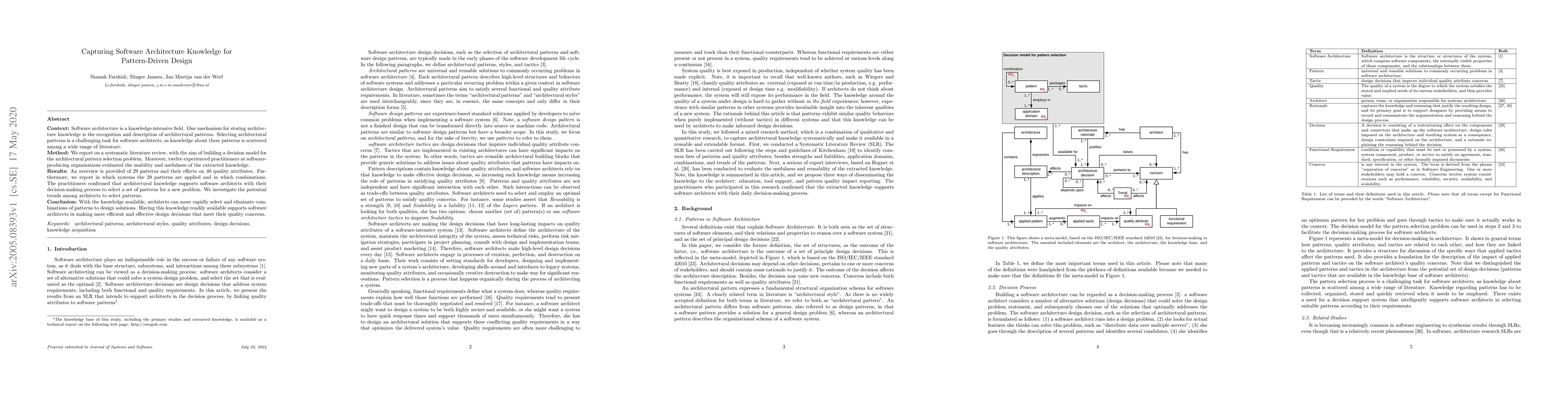 This paper presents a systematic literature review to build a decision model for selecting architectural patterns, evaluating its usability with practitioners. It identifies 29 patterns and their effects on 40 quality attributes, confirming that the extracted knowledge aids architects in making efficient design decisions.