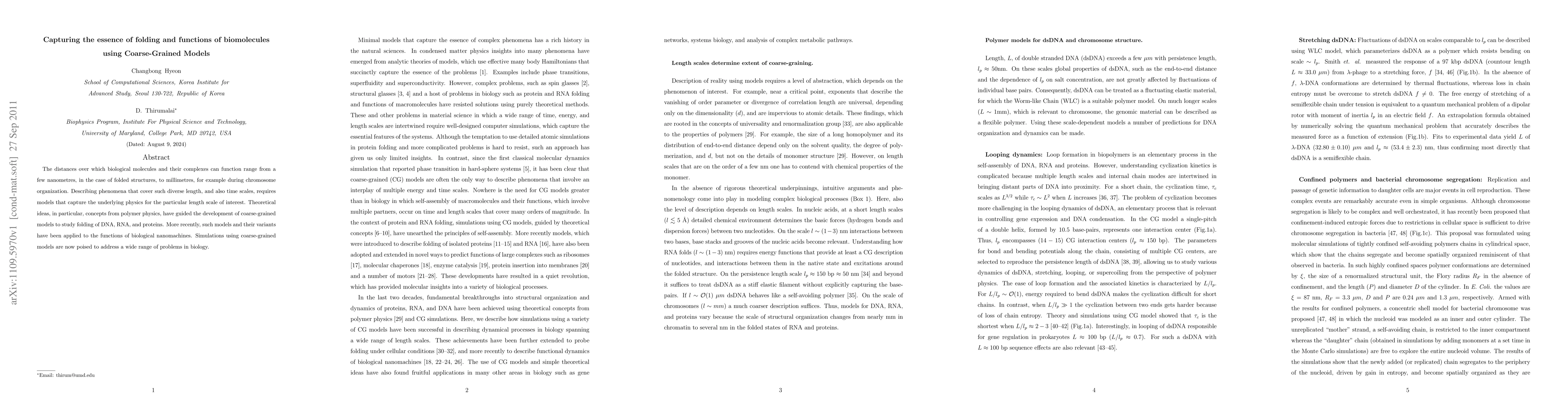 Researchers developed coarse-grained models to study the folding and functions of biomolecules, capturing phenomena from nanometers to millimeters, using concepts from polymer physics. These models simulate a wide range of biological problems and address diverse length scales.