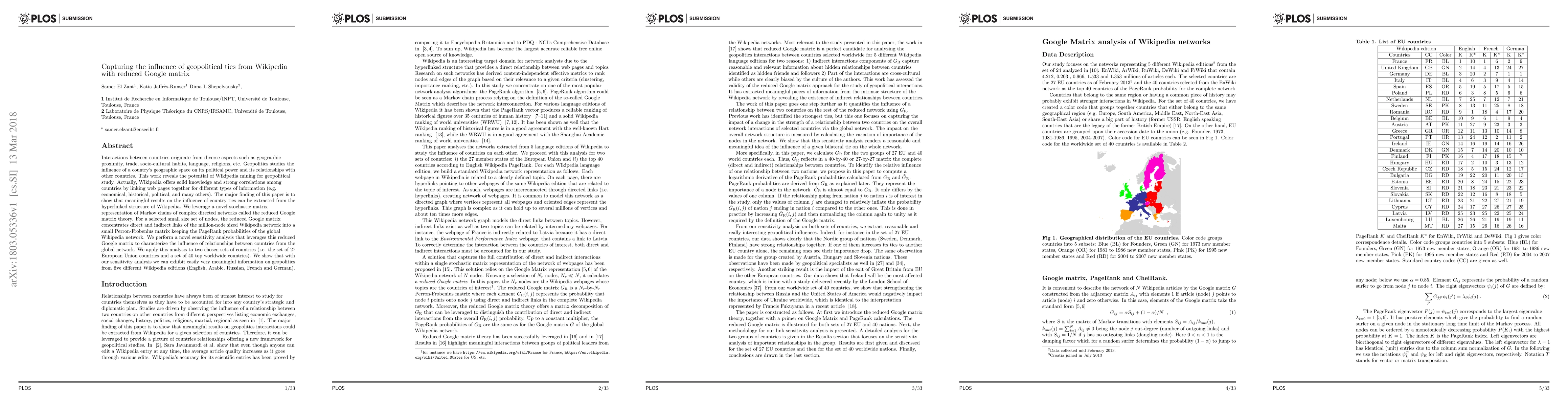 Interactions between countries originate from diverse aspects such as geographic proximity, trade, socio-cultural habits, language, religions, etc. Geopolitics studies the influence of a country's geographic space on its political power and its relationships with other countries. This work reveals the potential of Wikipedia mining for geopolitical study. Actually, Wikipedia offers solid knowledge and strong correlations among countries by linking web pages together for different types of information (e.g. economical, historical, political, and many others). The major finding of this paper is to show that meaningful results on the influence of country ties can be extracted from the hyperlinked structure of Wikipedia. We leverage a novel stochastic matrix representation of Markov chains of complex directed networks called the reduced Google matrix theory. For a selected small size set of nodes, the reduced Google matrix concentrates direct and indirect links of the million-node sized Wikipedia network into a small Perron-Frobenius matrix keeping the PageRank probabilities of the global Wikipedia network. We perform a novel sensitivity analysis that leverages this reduced Google matrix to characterize the influence of relationships between countries from the global network. We apply this analysis to two chosen sets of countries (i.e. the set of 27 European Union countries and a set of 40 top worldwide countries). We show that with our sensitivity analysis we can exhibit easily very meaningful information on geopolitics from five different Wikipedia editions (English, Arabic, Russian, French and German).