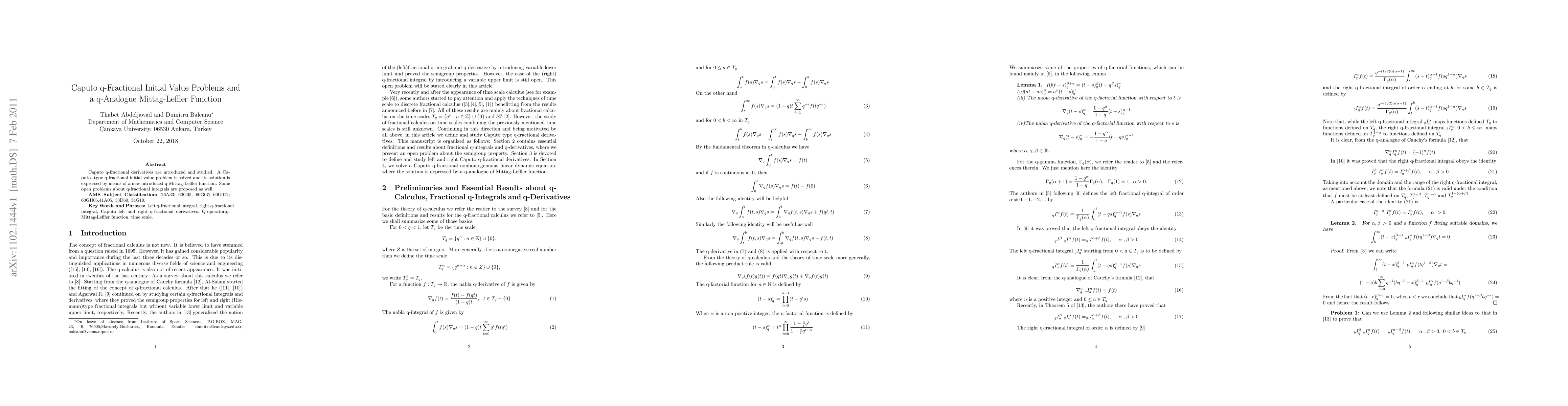 This paper introduces Caputo q-fractional derivatives and solves a q-fractional initial value problem, expressing the solution in terms of a newly defined q-Mittag-Leffler function. It also proposes open problems regarding q-fractional integrals.