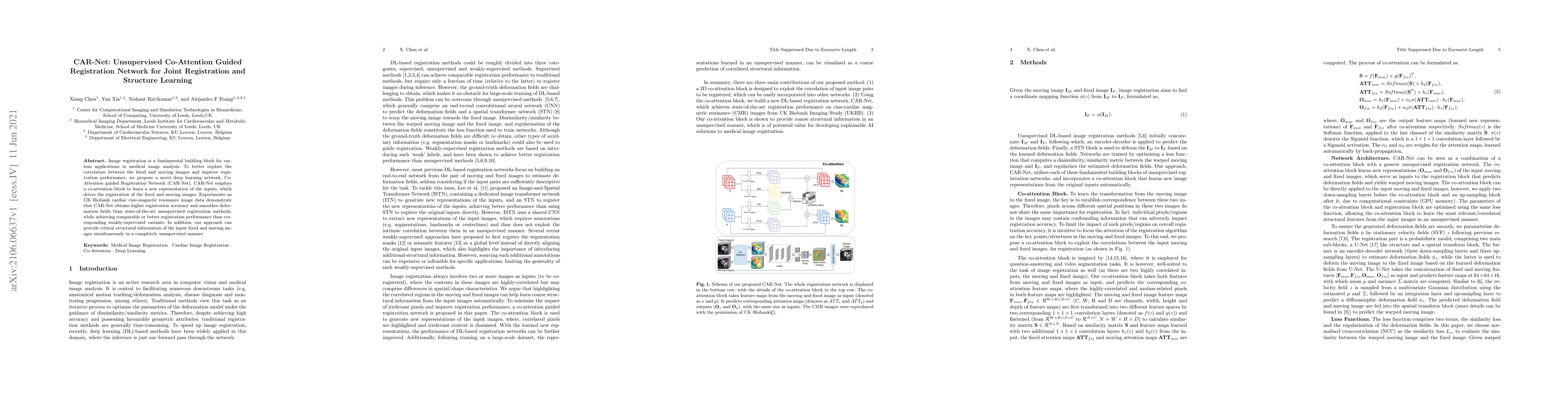 CAR-Net is a novel deep learning network that uses co-attention to improve image registration accuracy and learn structural information in an unsupervised manner. Experiments show it outperforms state-of-the-art unsupervised methods and achieves comparable or better results than weakly-supervised variants.