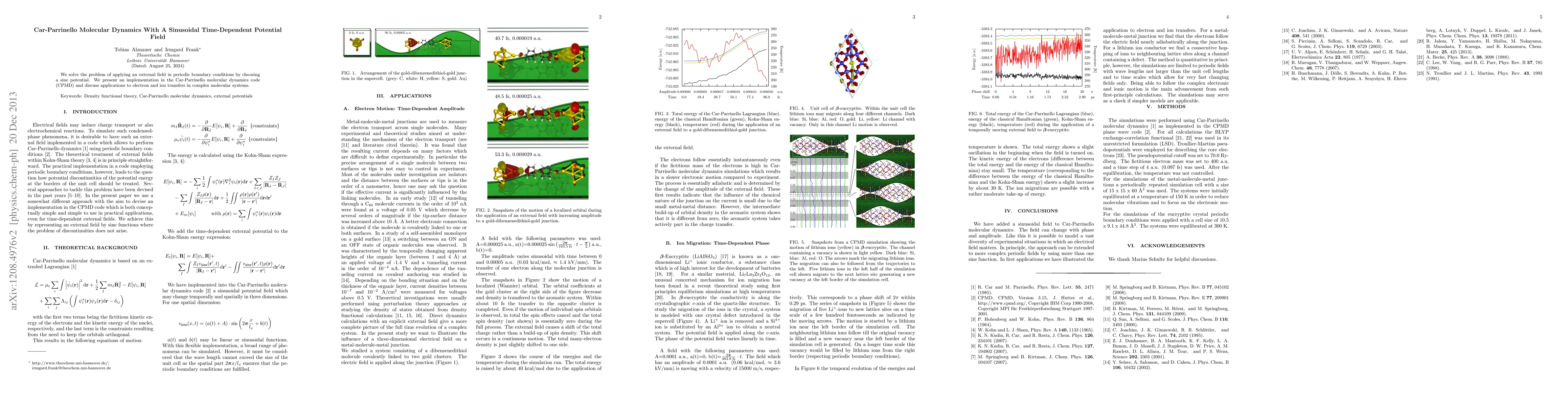 This paper implements a sinusoidal time-dependent potential field in Car-Parrinello molecular dynamics (CPMD) to study electron and ion transfers in complex molecular systems, addressing the challenge of applying external fields within periodic boundary conditions. The method's effectiveness is demonstrated through its applications in simulating dynamic processes.