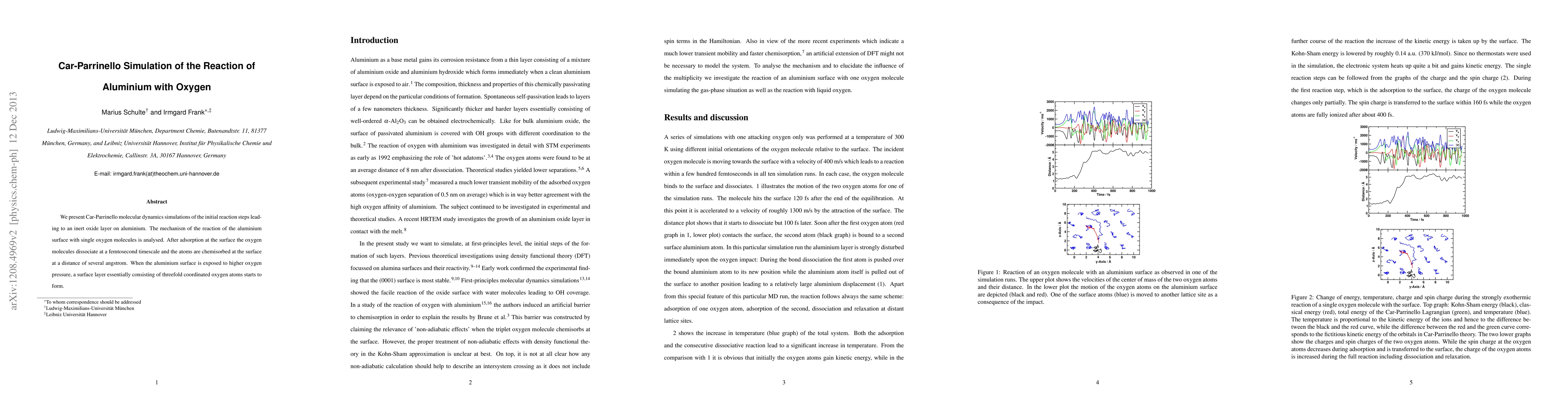 Car-Parrinello simulations reveal that aluminium reacts with oxygen, with oxygen molecules dissociating and atoms chemisorbing at the surface within femtoseconds. Higher oxygen pressure leads to formation of an oxide layer with threefold coordinated oxygen atoms.