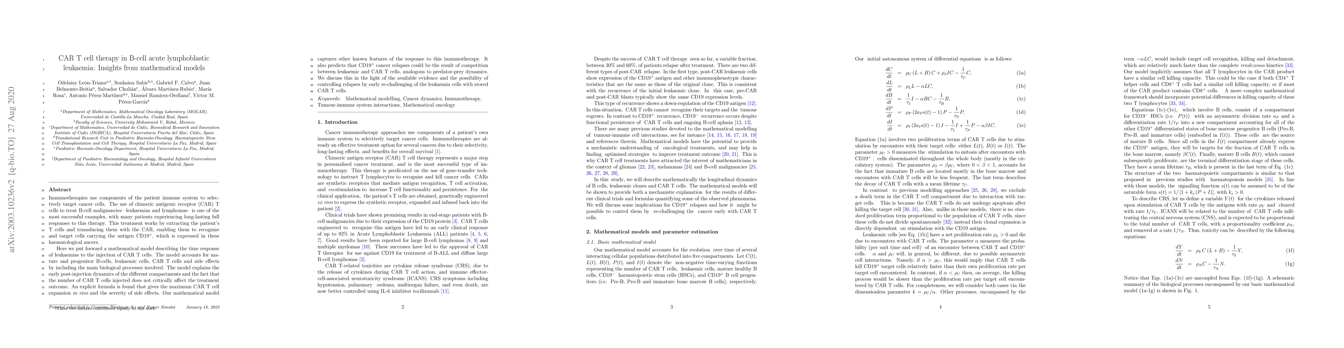 This paper presents a mathematical model to describe the dynamics of CAR T cell therapy in B-cell acute lymphoblastic leukaemia, detailing the interactions between CAR T cells, tumor cells, and biological processes. The model predicts the maximum CAR T cell expansion and side effects, and suggests that CD19+ tumor relapses may result from predator-prey dynamics, offering potential strategies for relapse prevention.