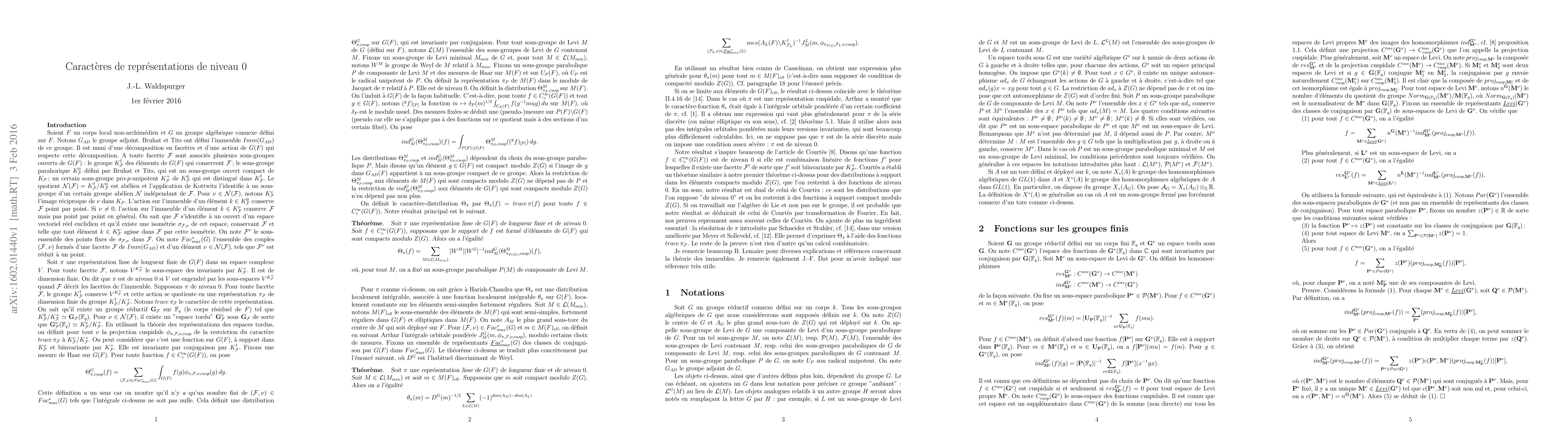 Researchers computed the character of every smooth representation of finite length and depth 0 of a p-adic group, finding that it equals a linear combination of weighted orbital integrals in strongly regular semi-simple points.
