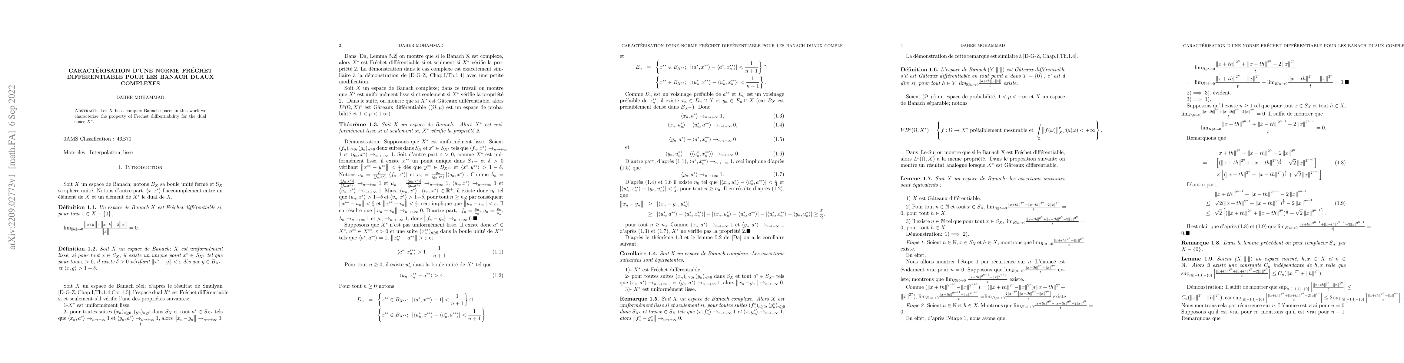 Summary: This paper characterizes the Frechet differentiability property of the dual space $X^*$ for a complex Banach space $X$. It explores the conditions under which the dual space exhibits this differentiable behavior.