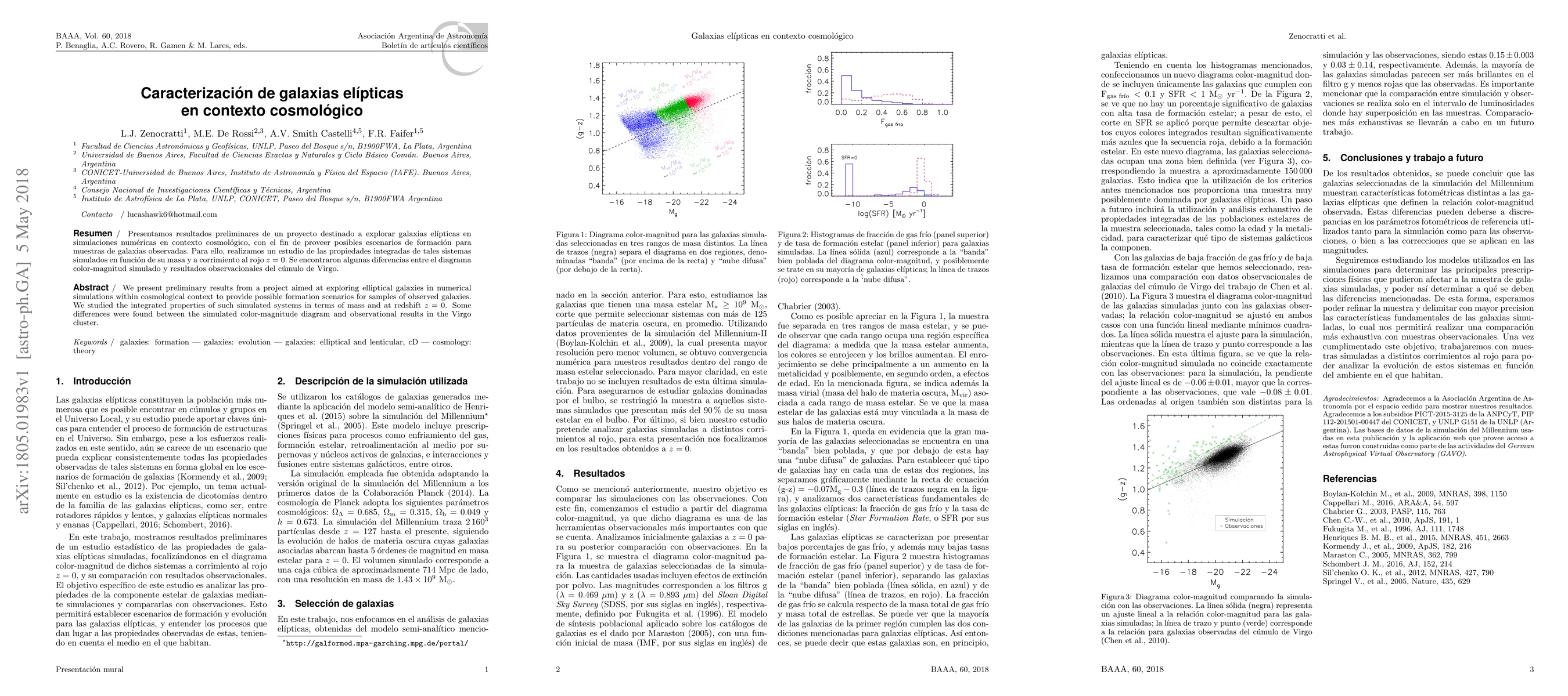 We present preliminary results from a project aimed at exploring elliptical galaxies in numerical simulations within cosmological context to provide possible formation scenarios for samples of observed galaxies. We studied the integrated properties of such simulated systems in terms of mass and at redshift z=0. Some differences were found between the simulated color-magnitude diagram and observational results in the Virgo cluster.
