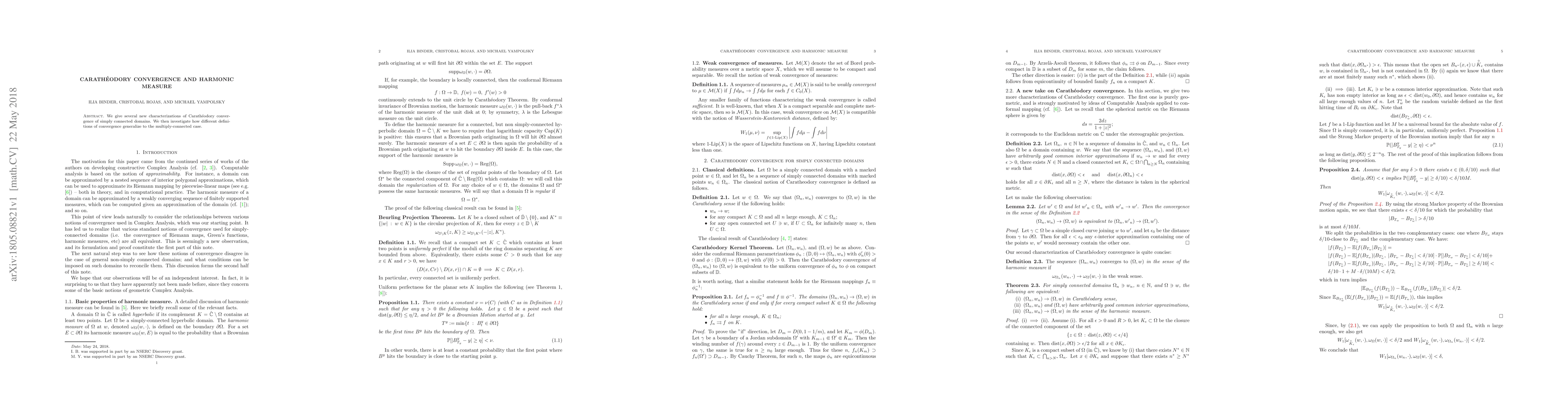 Summary: This paper presents new characterizations of Caratheodory convergence for simply connected domains and explores the extension of these definitions to multiply-connected domains, focusing on harmonic measure implications.