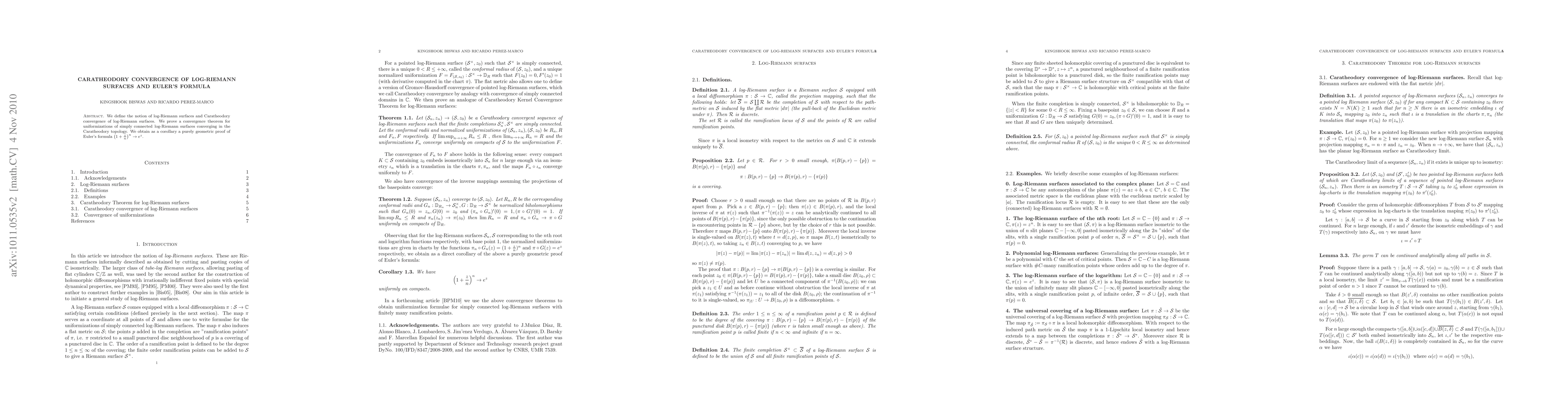 This paper introduces the concept of log-Riemann surfaces and establishes Caratheodory convergence for them, proving a convergence theorem for uniformizations. As a result, it provides a geometric proof of Euler's formula (1 + z/n)^n converging to e^z.