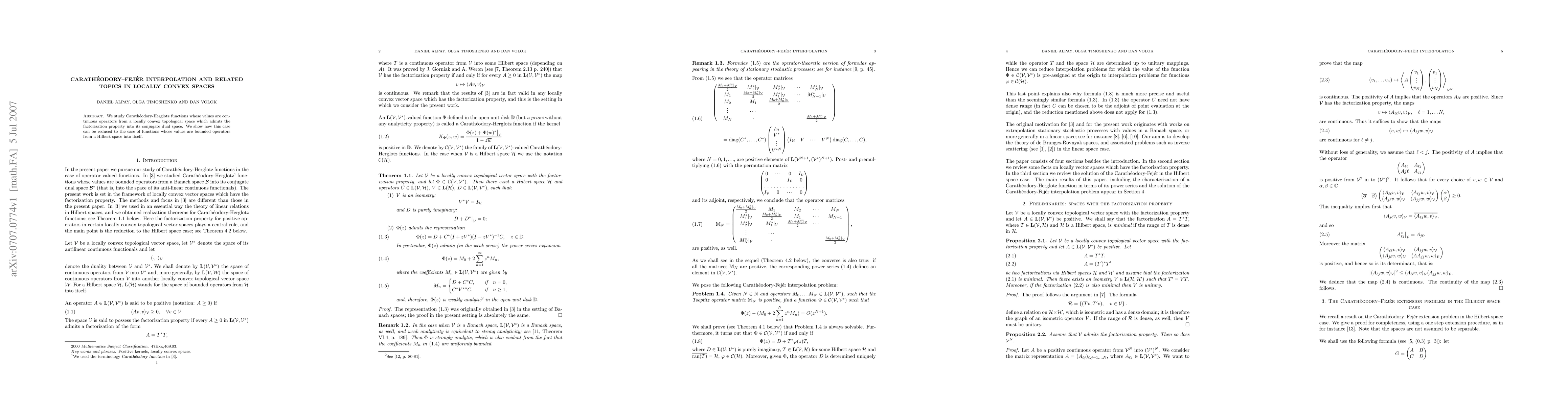 We study Caratheodory-Herglotz functions whose values are continuous operators from a locally convex topological space which admits the factorization property into its conjugate dual space. We show how this case can be reduced to the case of functions whose values are bounded operators from a Hilbert space into itself.