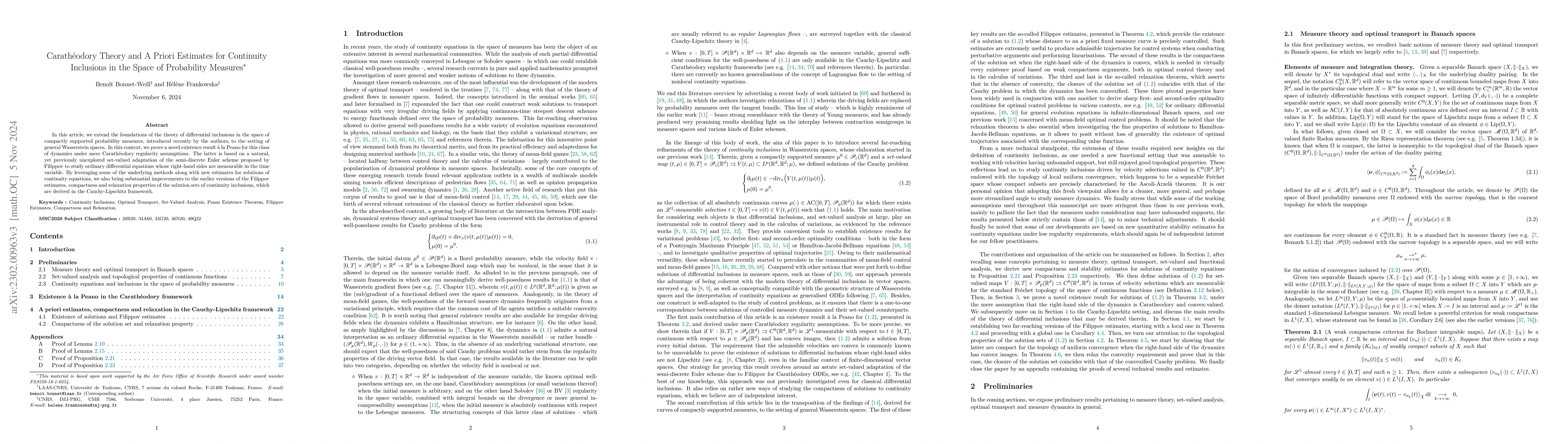 This paper extends the theory of differential inclusions in probability measures to Wasserstein spaces, proposing a new existence result for continuity inclusions under Carathéodory regularity, and improving Filippov's theorem with enhanced compactness and relaxation properties.
