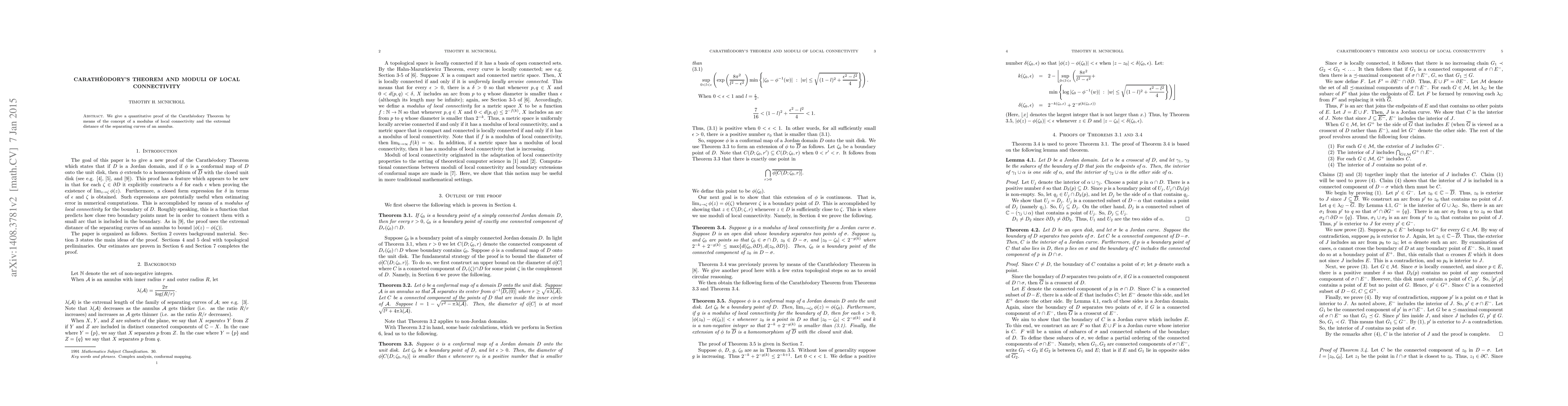 We give a constructive proof of the Carath\'eodory Theorem by means of the concept of a modulus of local connectivity and the extremal distance of the separating curves of an annulus.