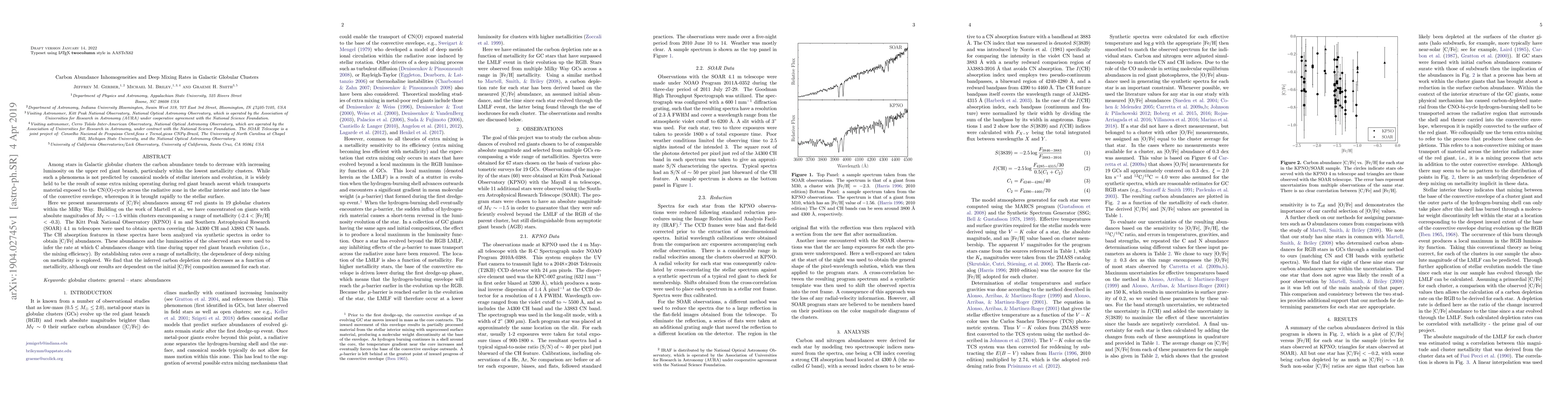 This study investigates carbon abundance inhomogeneities in Galactic globular clusters, finding that carbon abundance decreases with luminosity on the upper red giant branch, especially in low-metallicity clusters. The research measures [C/Fe] ratios in 67 red giants across 19 clusters, revealing a correlation between carbon depletion and metallicity, suggesting deep mixing rates vary with metallicity.