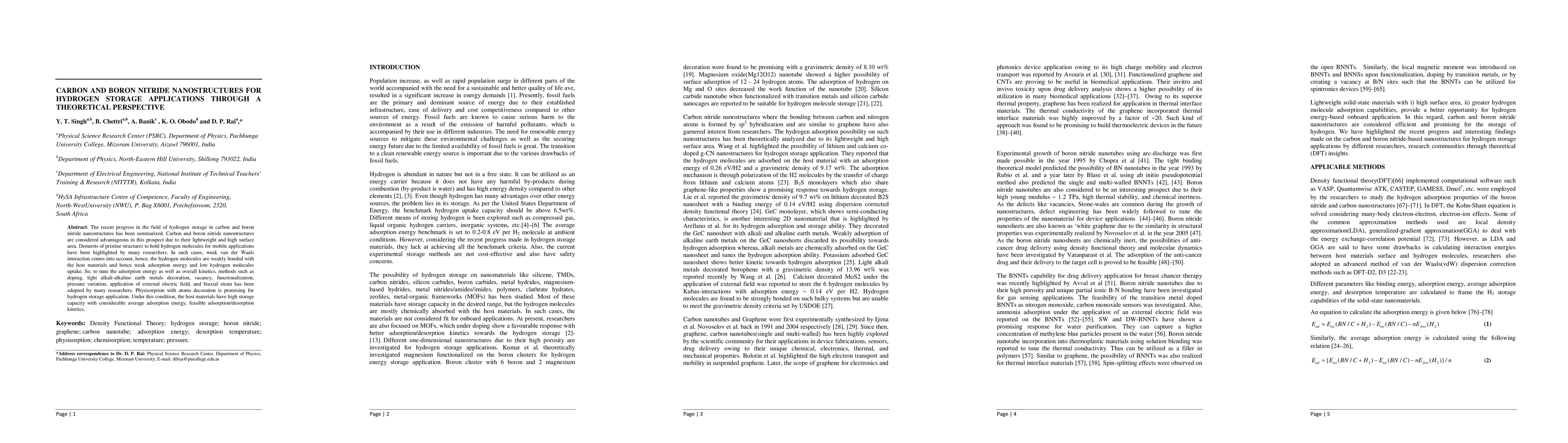 This paper reviews recent advancements in using carbon and boron nitride nanostructures for hydrogen storage, emphasizing their lightweight and high surface area benefits. To enhance hydrogen adsorption, researchers employ methods like doping, decoration with light alkali-alkaline earth metals, and functionalization, achieving higher storage capacity and better kinetics.