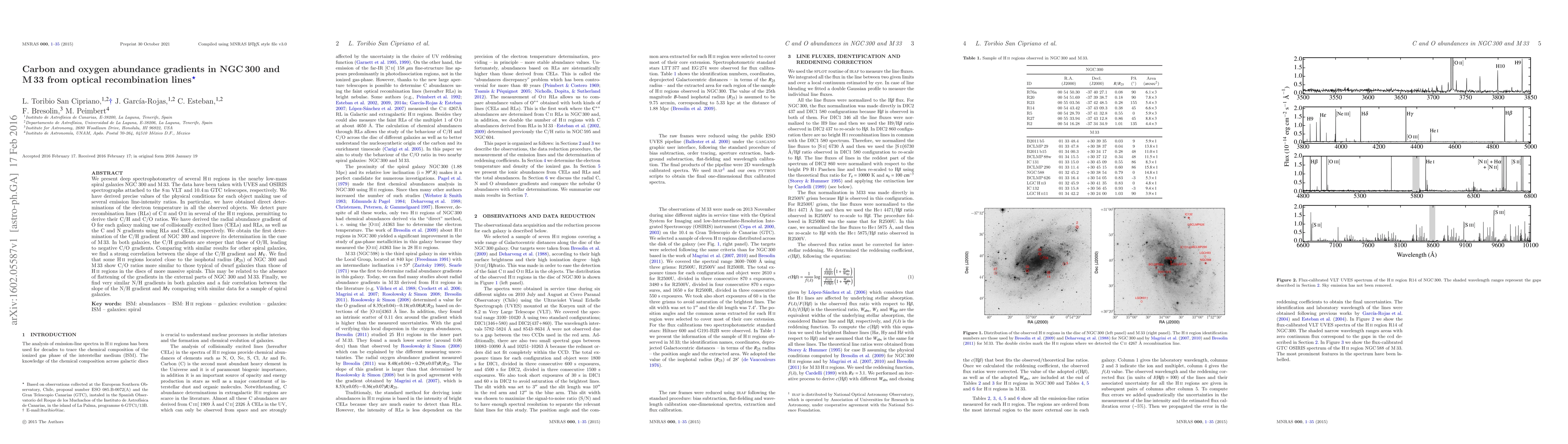 This research uses deep spectrophotometry from VLT and GTC telescopes to determine carbon and oxygen abundance gradients in NGC 300 and M33. It finds steeper C/H gradients than O/H, resulting in negative C/O ratios, and correlates these gradients with the galaxies' visual magnitudes, suggesting a link to the absence of gradient flattening in the outer regions.