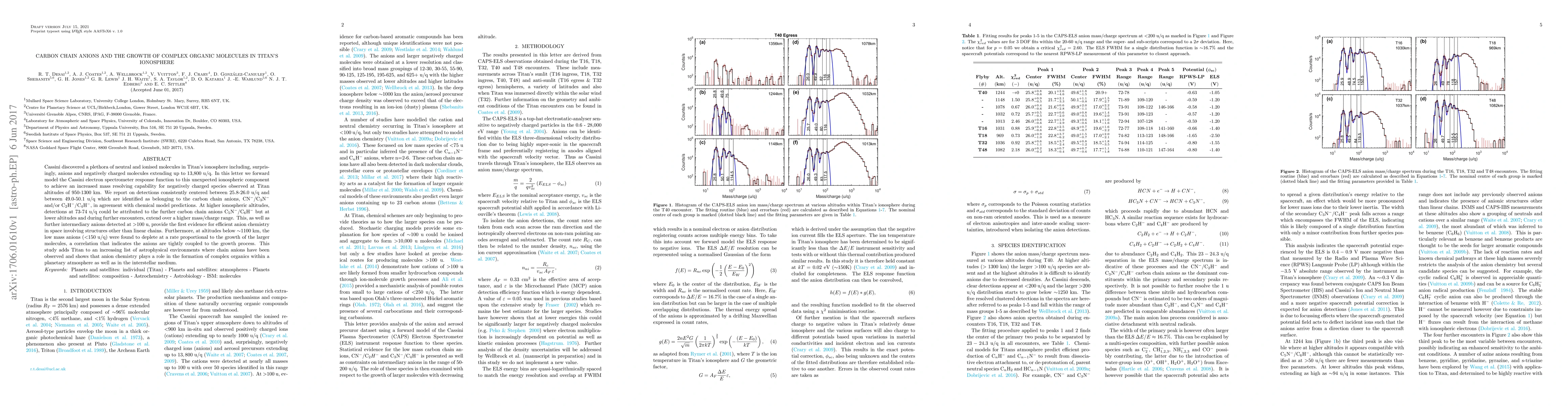 The research utilized a forward model of the CAPS-ELS response function to enhance mass resolving capability for negatively charged species in Titan's ionosphere, analyzing data from Cassini's Electron Spectrometer.