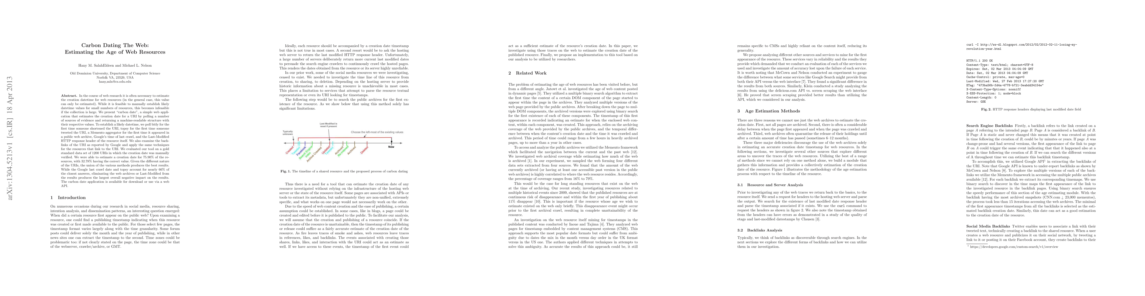 In the course of web research it is often necessary to estimate the creation datetime for web resources (in the general case, this value can only be estimated). While it is feasible to manually establish likely datetime values for small numbers of resources, this becomes infeasible if the collection is large. We present "carbon date", a simple web application that estimates the creation date for a URI by polling a number of sources of evidence and returning a machine-readable structure with their respective values. To establish a likely datetime, we poll bitly for the first time someone shortened the URI, topsy for the first time someone tweeted the URI, a Memento aggregator for the first time it appeared in a public web archive, Google's time of last crawl, and the Last-Modified HTTP response header of the resource itself. We also examine the backlinks of the URI as reported by Google and apply the same techniques for the resources that link to the URI. We evaluated our tool on a gold-standard data set of 1200 URIs in which the creation date was manually verified. We were able to estimate a creation date for 75.90% of the resources, with 32.78% having the correct value. Given the different nature of the URIs, the union of the various methods produces the best results. While the Google last crawl date and topsy account for nearly 66% of the closest answers, eliminating the web archives or Last-Modified from the results produces the largest overall negative impact on the results. The carbon date application is available for download or use via a webAPI.