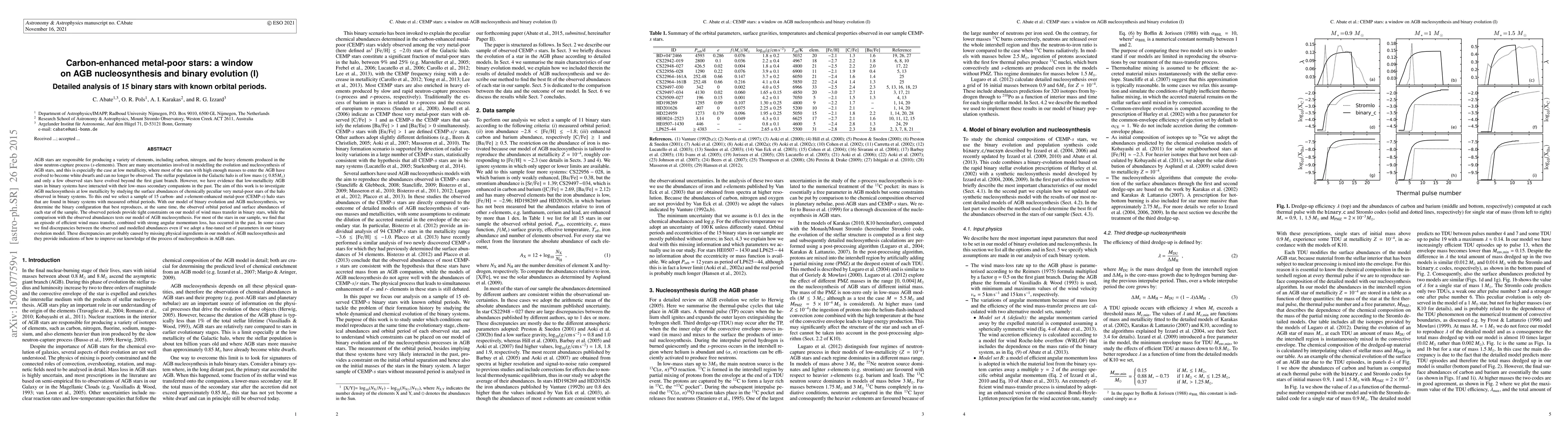 This paper investigates the nucleosynthesis and binary evolution of low-metallicity carbon-enhanced metal-poor (CEMP-$s$) stars in the Galactic halo, using a sample of 15 binary stars with known orbital periods. The study aims to understand AGB star processes by comparing observed orbital periods and surface abundances with models of binary evolution and AGB nucleosynthesis.