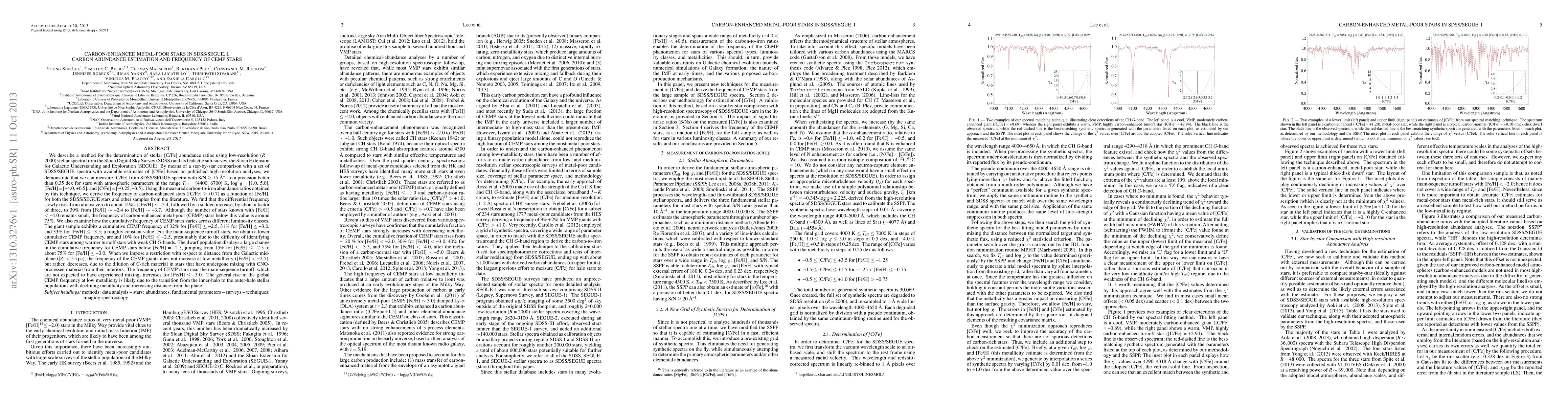 Researchers developed a method to estimate carbon abundance in metal-poor stars with low-resolution spectra, finding that CEMP (carbon-enhanced metal-poor) stars occur at increasing frequencies as metallicity decreases.