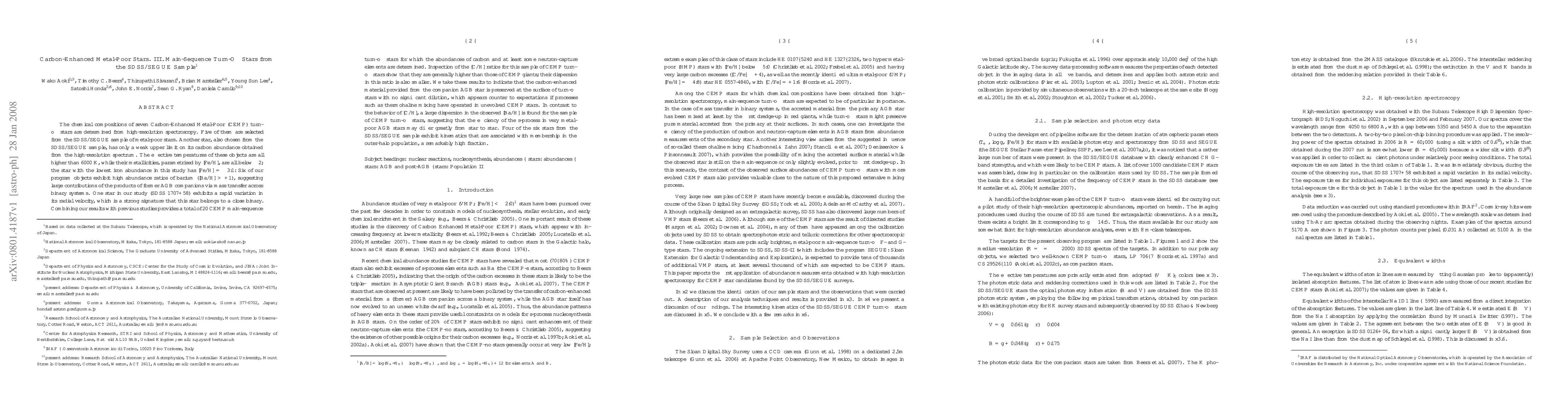 This study analyzes the chemical compositions of seven Carbon-Enhanced Metal-Poor (CEMP) turn-off stars, revealing high carbon-to-iron ratios and significant barium abundances, likely from former AGB companions. The findings suggest that carbon-enhanced material is preserved in turn-off stars without dilution, while large variations in barium suggest differing s-process efficiencies in metal-poor AGB stars.