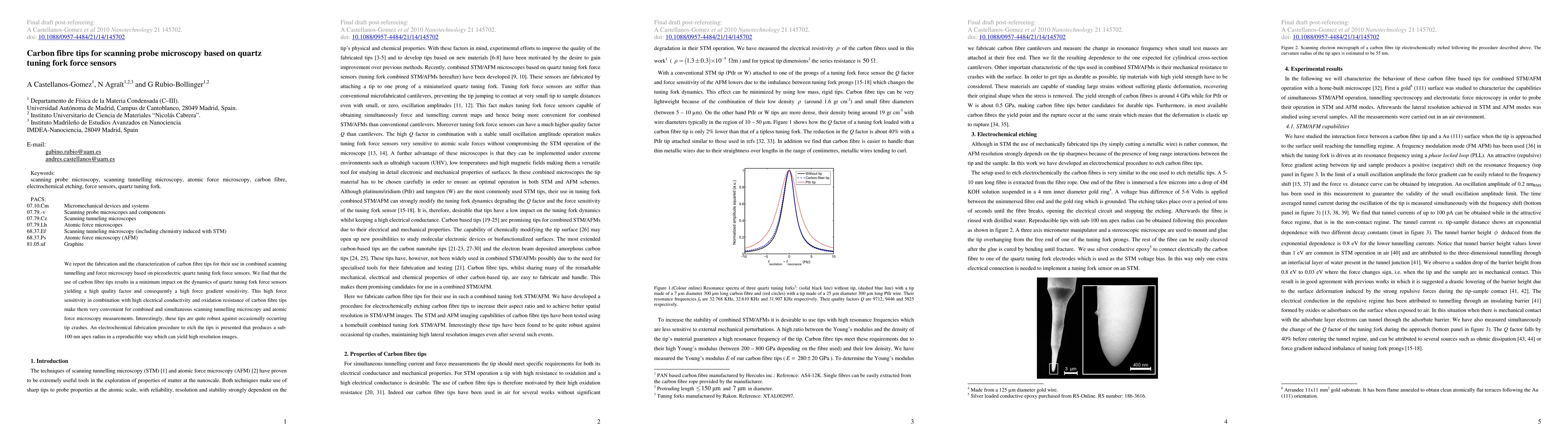 This paper details the fabrication and evaluation of carbon fibre tips for scanning probe microscopy using quartz tuning fork sensors, showing they provide minimal impact on sensor dynamics, high force gradient sensitivity, robustness, and high resolution imaging through an electrochemical etching process.