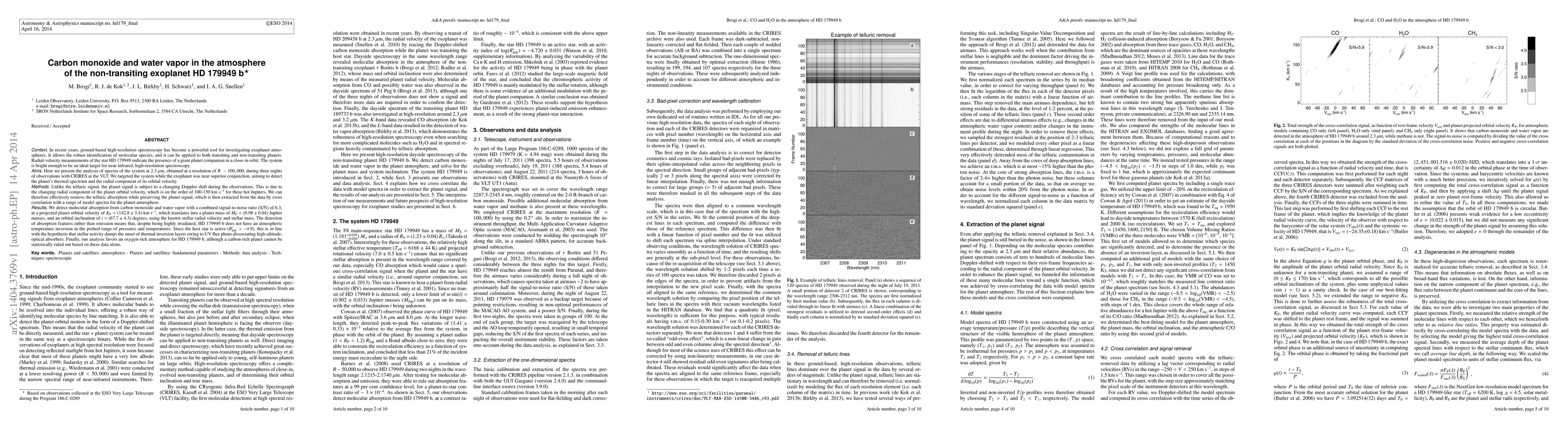 This study uses high-resolution spectroscopy to detect carbon monoxide and water vapor in the atmosphere of the non-transiting exoplanet HD 179949 b, revealing an oxygen-rich atmosphere and no atmospheric temperature inversion, likely due to stellar activity.