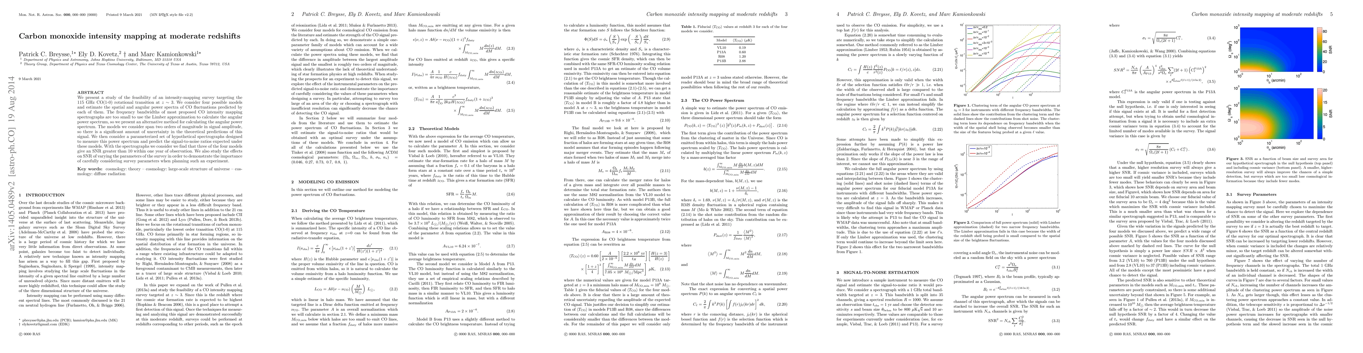 We present a study of the feasibility of an intensity-mapping survey targeting the 115 GHz CO(1-0) rotational transition at $z\sim3$. We consider four possible models and estimate the spatial and angular power spectra of CO fluctuations predicted by each of them. The frequency bandwidths of most proposed CO intensity mapping spectrographs are too small to use the Limber approximation to calculate the angular power spectrum, so we present an alternative method for calculating the angular power spectrum. The models we consider span two orders of magnitude in signal amplitude, so there is a significant amount of uncertainty in the theoretical predictions of this signal. We then consider a parameterized set of hypothetical spectrographs designed to measure this power spectrum and predict the signal-to-noise ratios expected under these models. With the spectrographs we consider we find that three of the four models give an SNR greater than 10 within one year of observation. We also study the effects on SNR of varying the parameters of the survey in order to demonstrate the importance of carefully considering survey parameters when planning such an experiment.