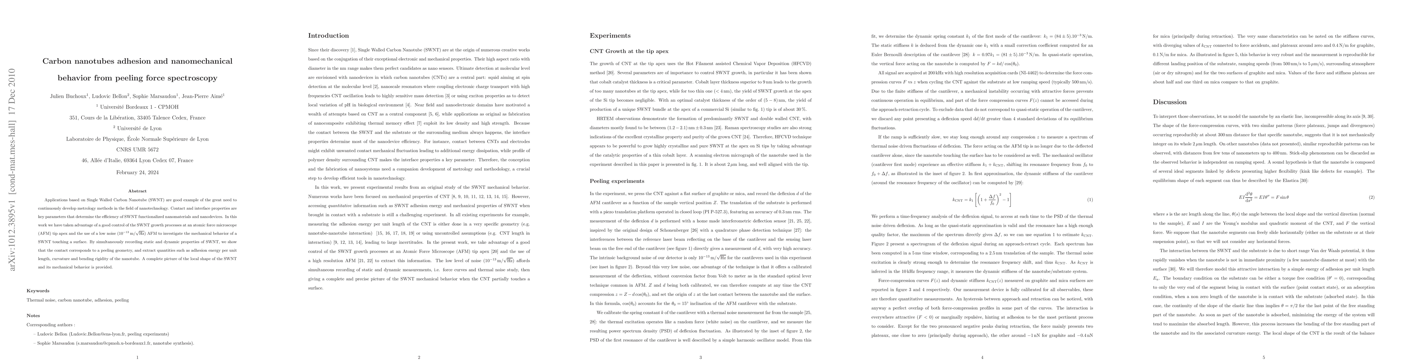 This research investigates the adhesion and nanomechanical behavior of Single Walled Carbon Nanotubes (SWNT) using atomic force microscopy (AFM) techniques. The study reveals the peeling geometry of SWNTs and provides quantitative measures of adhesion energy, curvature, and bending rigidity, offering insights into the mechanical properties of SWNTs for nanomaterial applications.