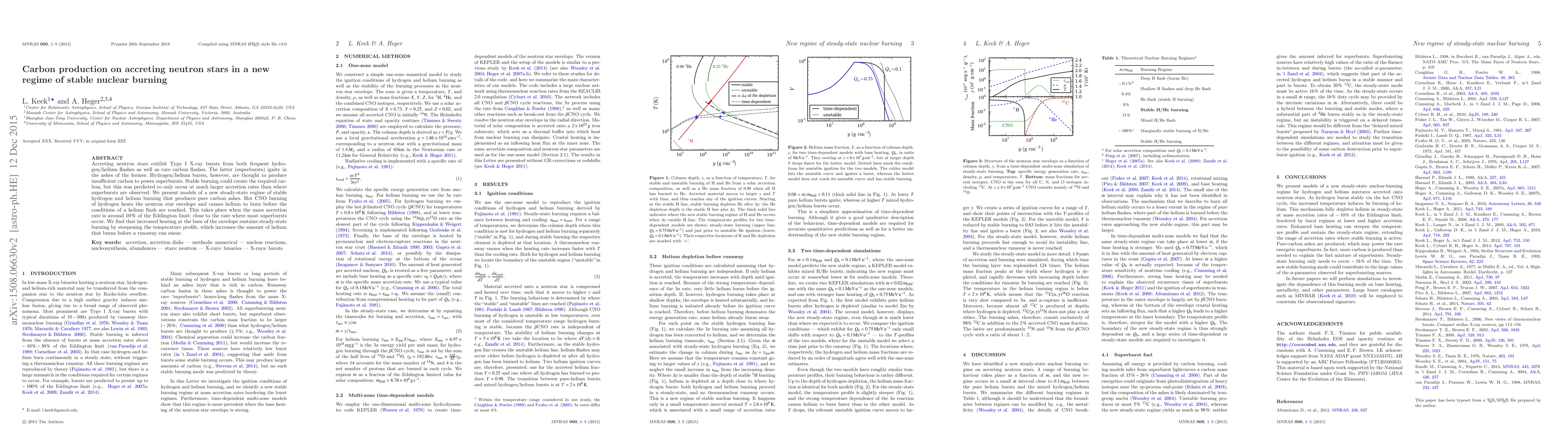 This paper presents a new regime of stable nuclear burning on accreting neutron stars that produces carbon, explaining the origin of rare carbon superbursts. The models show that stable burning occurs at accretion rates near 10% of the Eddington limit, enabling sufficient carbon production to power these superbursts.