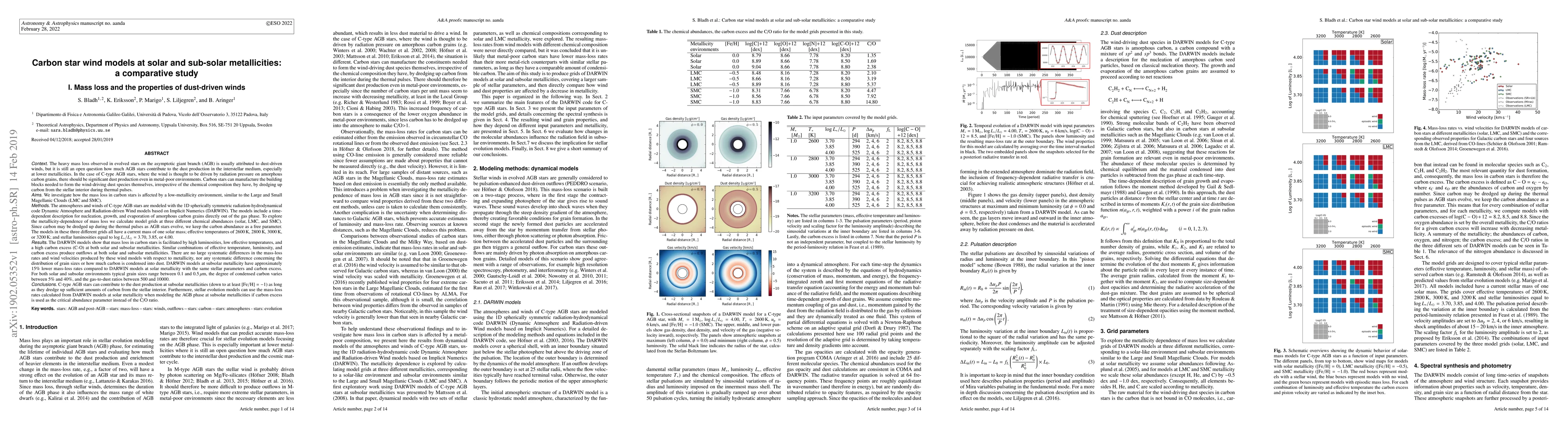 A study models carbon star winds at solar and sub-solar metallicities, finding that mass loss increases with high luminosity, low temperature, and high carbon content, with no significant differences in mass-loss rates or grain sizes between metallicity levels.