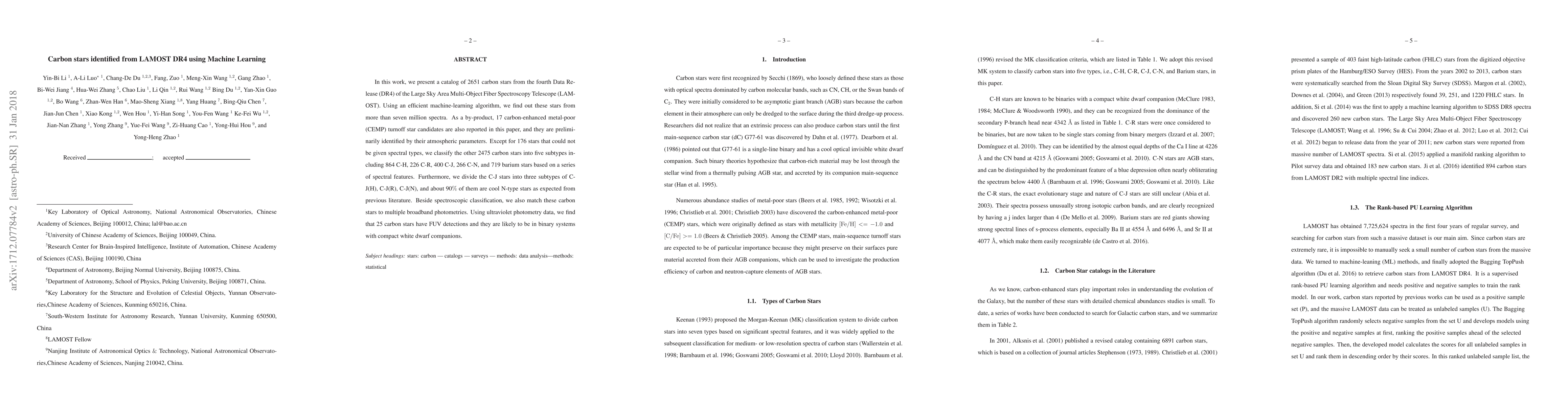 This paper catalogs 2651 carbon stars identified from LAMOST DR4 using machine learning, classifying 2475 into subtypes and finding 17 carbon-enhanced metal-poor turnoff star candidates, with 25 likely in binary systems.