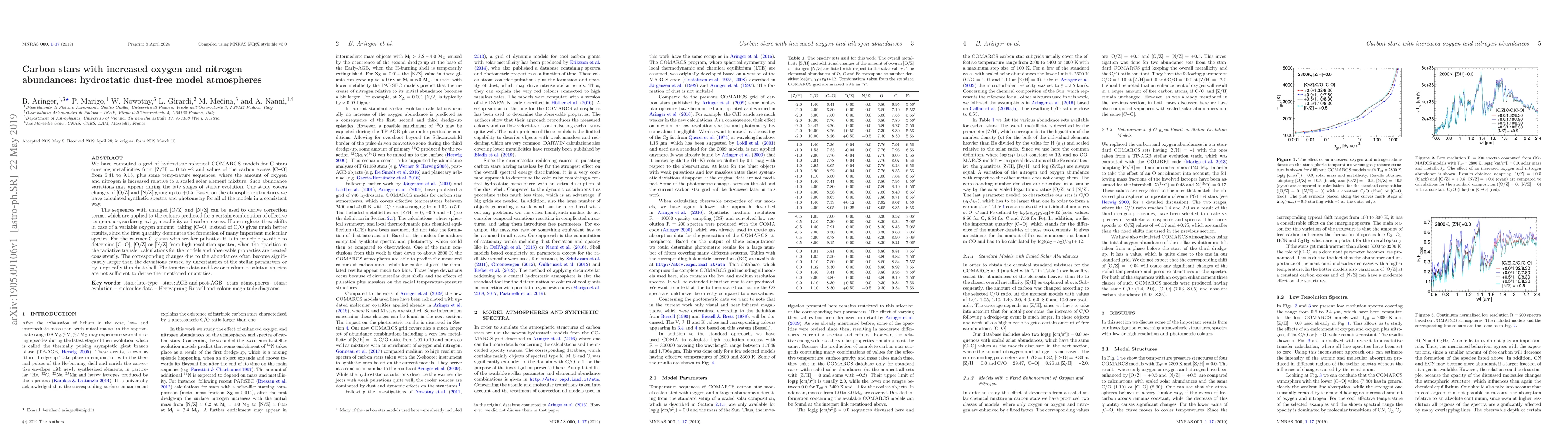 We have computed a grid of hydrostatic spherical COMARCS models for C stars covering metallicities from [Z/H]=0 to -2 and values of the carbon excess [C-O] from 6.41 to 9.15, plus some temperature sequences, where the amount of oxygen and nitrogen is increased relative to a scaled solar element mixture. Such abundance variations may appear during the late stages of stellar evolution. Our study covers changes of [O/Z] and [N/Z] going up to +0.5. Based on the atmospheric structures we have calculated synthetic spectra and photometry for all of the models in a consistent way. The sequences with changed [O/Z] and [N/Z] can be used to derive correction terms, which are applied to the colours predicted for a certain combination of effective temperature, surface gravity, metallicity and carbon excess. If one neglects these shifts in case of a variable oxygen amount, taking [C-O] instead of C/O gives much better results, since the first quantity dominates the formation of many important molecular species. For the warmer C giants with weaker pulsation it is in principle possible to determine [C-O], [O/Z] or [N/Z] from high resolution spectra, when the opacities in the radiative transfer calculations for the models and observable properties are treated consistently. The corresponding changes due to the abundances often become significantly larger than the deviations caused by uncertainties of the stellar parameters or by a optically thin dust shell. Photometric data and low or medium resolution spectra are not sufficient to derive the mentioned quantities.