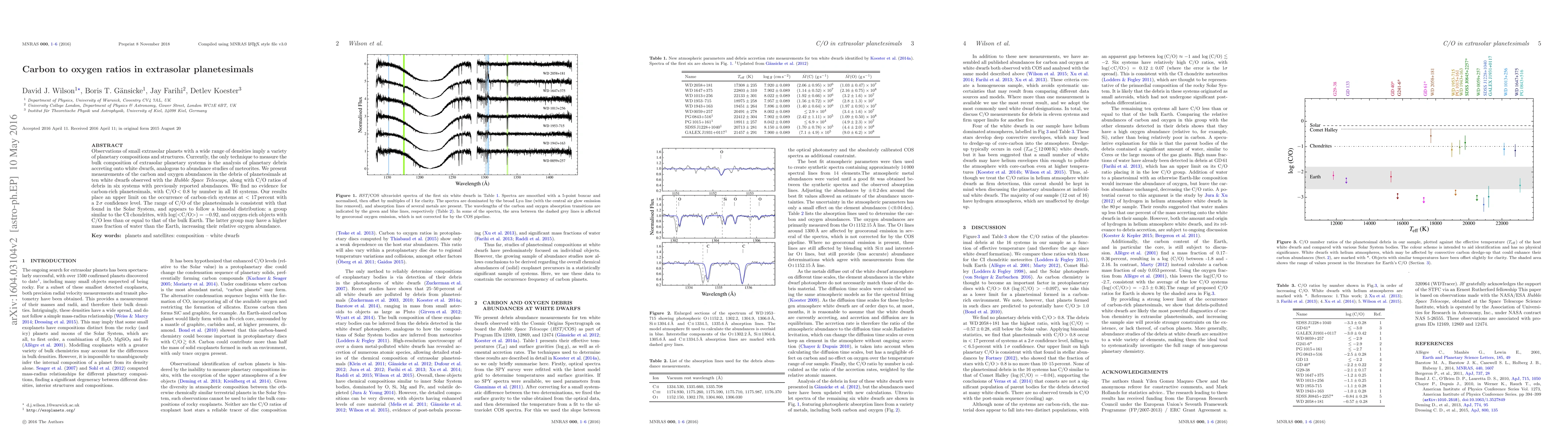with the Hubble Space Telescope, along with C/O ratios of debris in six systems