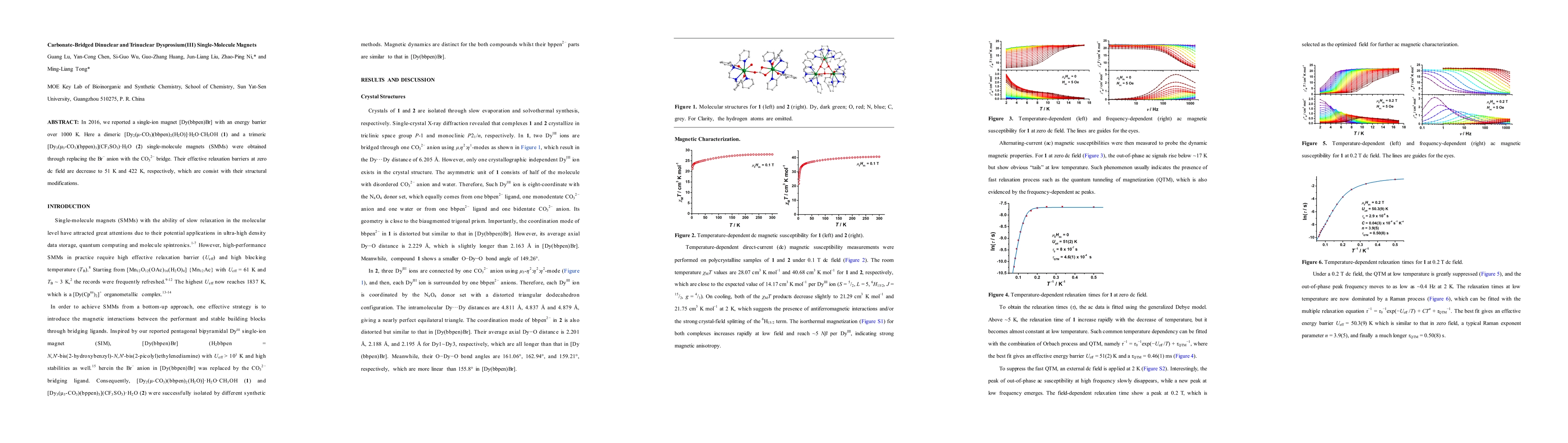 This paper reports the synthesis of dinuclear and trinuclear dysprosium(III) single-molecule magnets (SMMs) using carbonate bridges, which lower the effective relaxation barriers to 51 K and 422 K, respectively, compared to a previously reported single-ion magnet. The structural modifications correlate with these changes in magnetic properties.