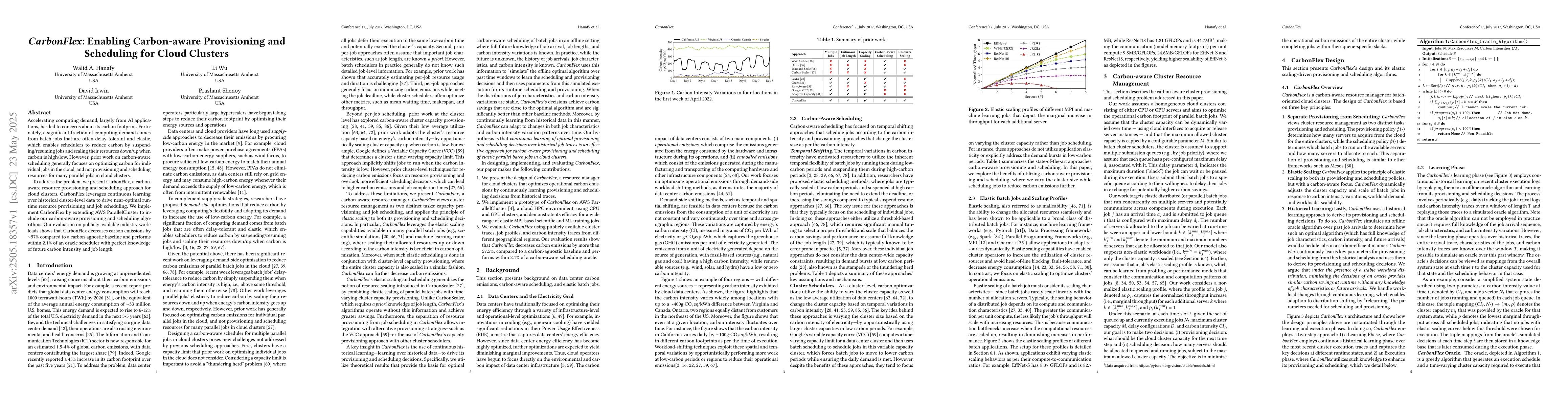 CarbonFlex, a carbon-aware resource provisioning and scheduling approach for cloud clusters that uses continuous learning over historical cluster-level data.