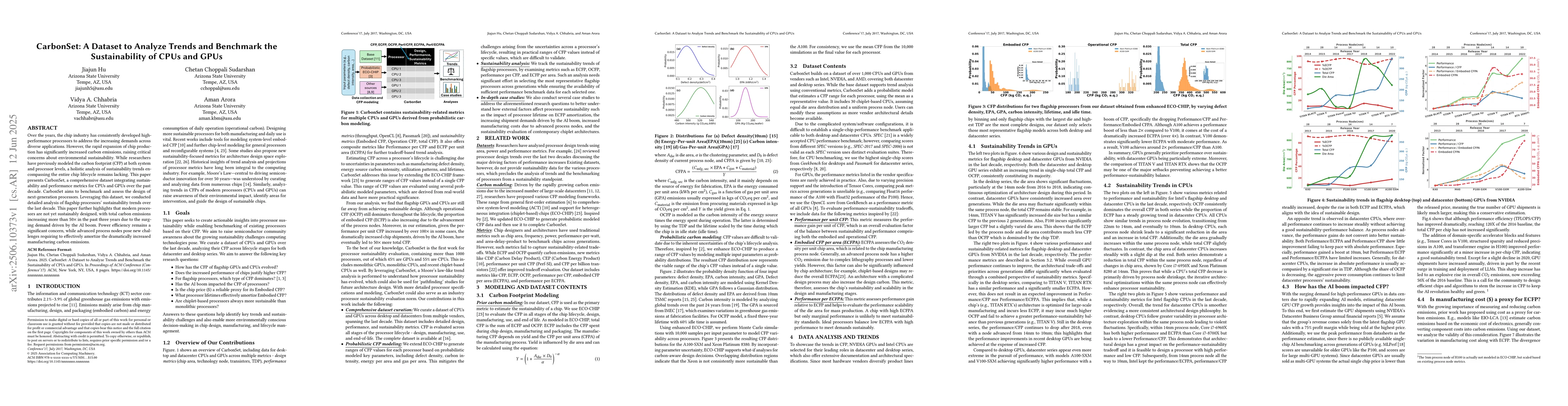 The paper introduces CarbonSet, a dataset detailing sustainability and performance metrics for CPUs and GPUs from 2011 to 2021. It reveals that carbon emissions from processor production have increased over 50 times in the last three years, primarily due to AI demand, and highlights power efficiency and process node challenges in sustainable processor design.