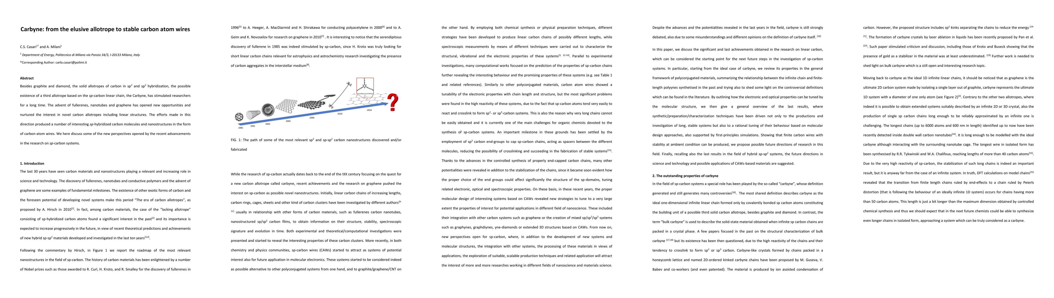 This paper explores the potential of Carbyne, a hypothetical sp-hybridized carbon allotrope, and discusses recent advancements in synthesizing stable carbon-atom wires, highlighting the implications for novel carbon nanostructures.