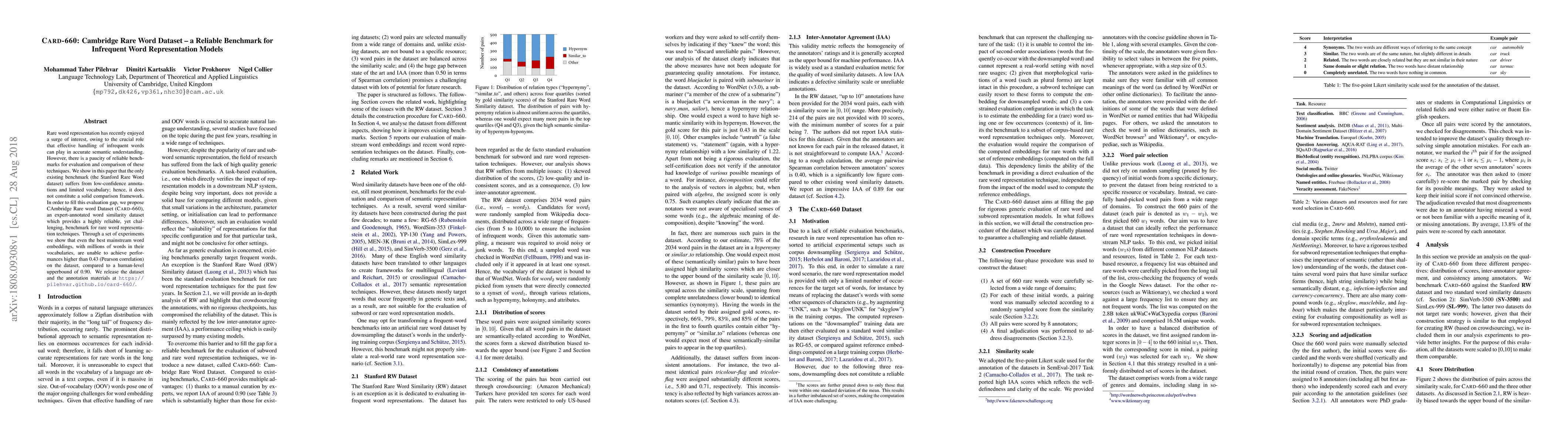 The paper introduces the CAmbridge Rare word Dataset (Card-660) as a reliable benchmark for evaluating rare word representation models, addressing the limitations of existing benchmarks. Even the best word embeddings perform poorly on this dataset, highlighting the need for improved techniques.