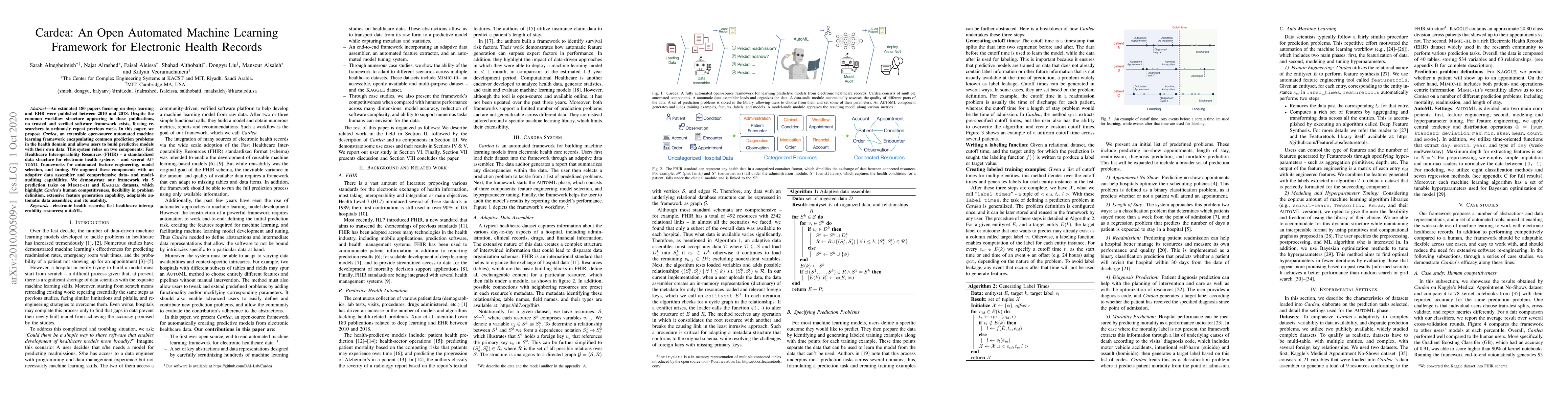 Cardea is an open-source automated machine learning framework designed to facilitate predictive modeling in the health domain using electronic health records. It integrates standardized data formats and AUTOML techniques for feature engineering and model optimization, showcasing human-competitive performance across various prediction tasks.