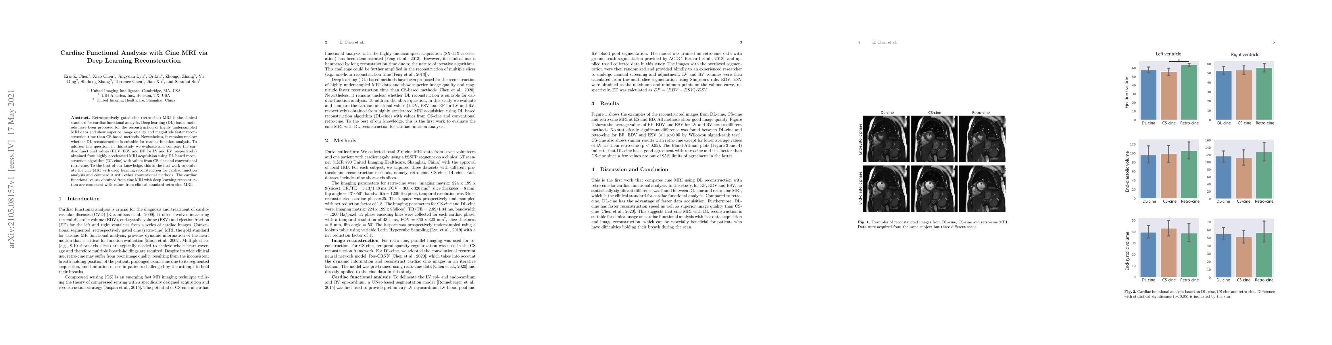 Retrospectively gated cine (retro-cine) MRI is the clinical standard for cardiac functional analysis. Deep learning (DL) based methods have been proposed for the reconstruction of highly undersampled MRI data and show superior image quality and magnitude faster reconstruction time than CS-based methods. Nevertheless, it remains unclear whether DL reconstruction is suitable for cardiac function analysis. To address this question, in this study we evaluate and compare the cardiac functional values (EDV, ESV and EF for LV and RV, respectively) obtained from highly accelerated MRI acquisition using DL based reconstruction algorithm (DL-cine) with values from CS-cine and conventional retro-cine. To the best of our knowledge, this is the first work to evaluate the cine MRI with deep learning reconstruction for cardiac function analysis and compare it with other conventional methods. The cardiac functional values obtained from cine MRI with deep learning reconstruction are consistent with values from clinical standard retro-cine MRI.