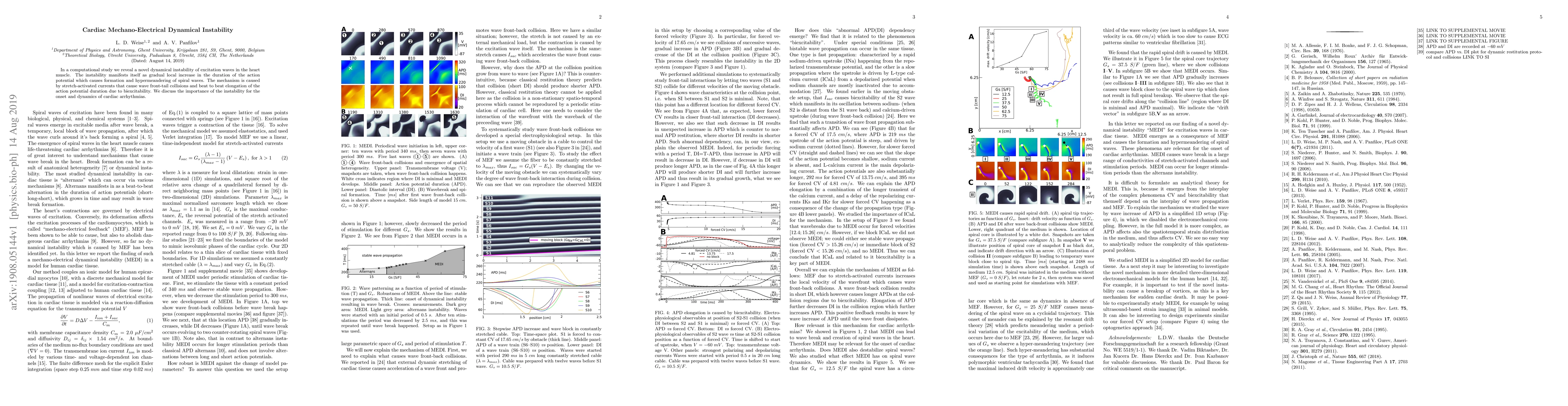 In a computational study we reveal a novel dynamical instability of excitation waves in the heartmuscle. The instability manifests itself as gradual local increase in the duration of the actionpotential which causes formation and hypermeandering of spiral waves. The mechanism is causedby stretch-activated currents that cause wave front-tail collisions and beat to beat elongation of theaction potential duration due to biexcitability. We discuss the importance of the instability for theonset and dynamics of cardiac arrhythmias.