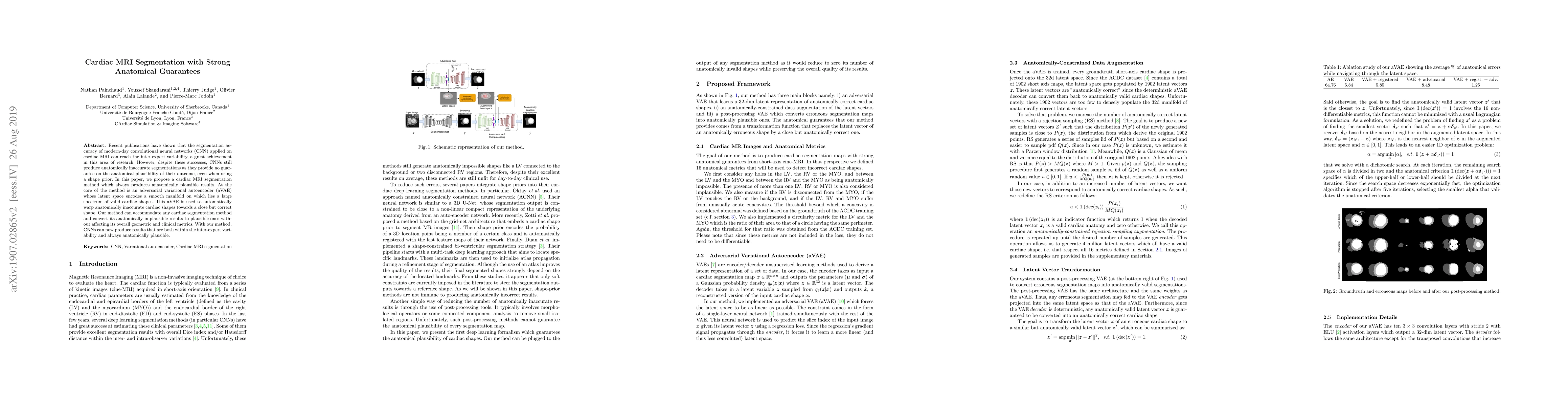 This research introduces a novel method for cardiac MRI segmentation that ensures anatomically plausible results using an adversarial variational autoencoder (aVAE). The proposed approach can correct anatomical inaccuracies from existing convolutional neural networks (CNNs) while preserving their segmentation accuracy, thus achieving both high precision and anatomical correctness.