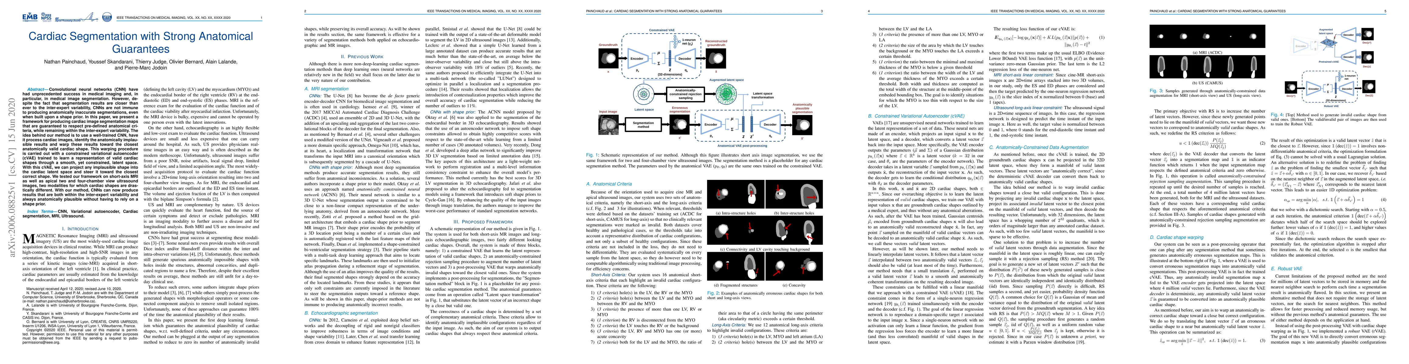This paper introduces a framework that ensures cardiac segmentations from CNNs are anatomically accurate by identifying implausible results and warping them toward the closest valid shape using a constrained variational autoencoder (cVAE). The framework maintains results within inter-expert variability without relying on a shape prior.