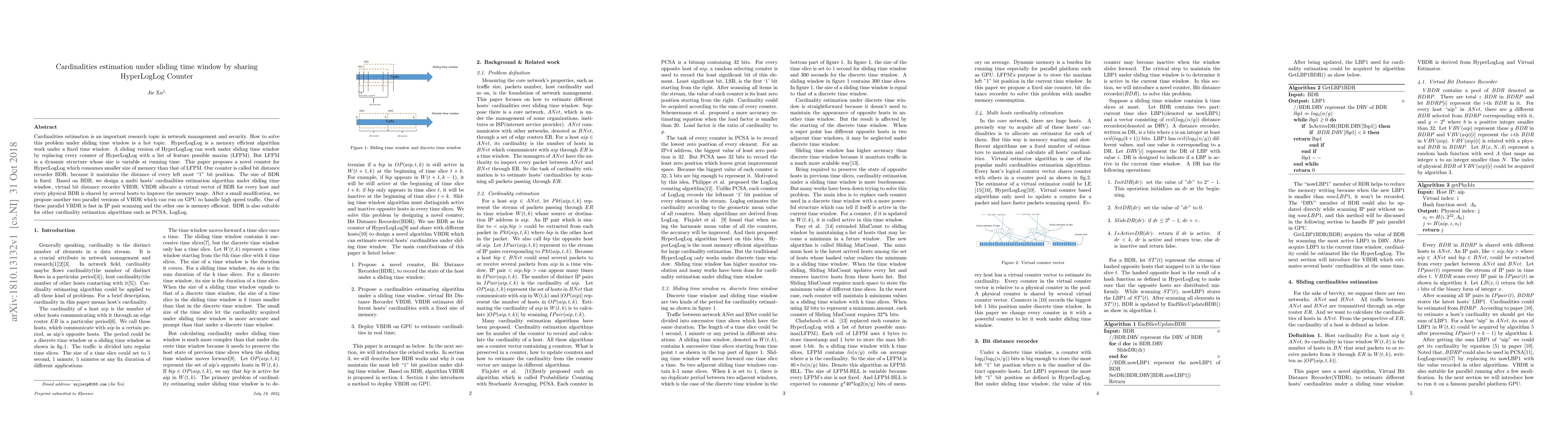 A new memory-efficient algorithm, Bit Distance Recorder (BDR), is proposed to estimate cardinalities under a sliding time window, allowing for improved memory usage and scalability in network management and security applications.