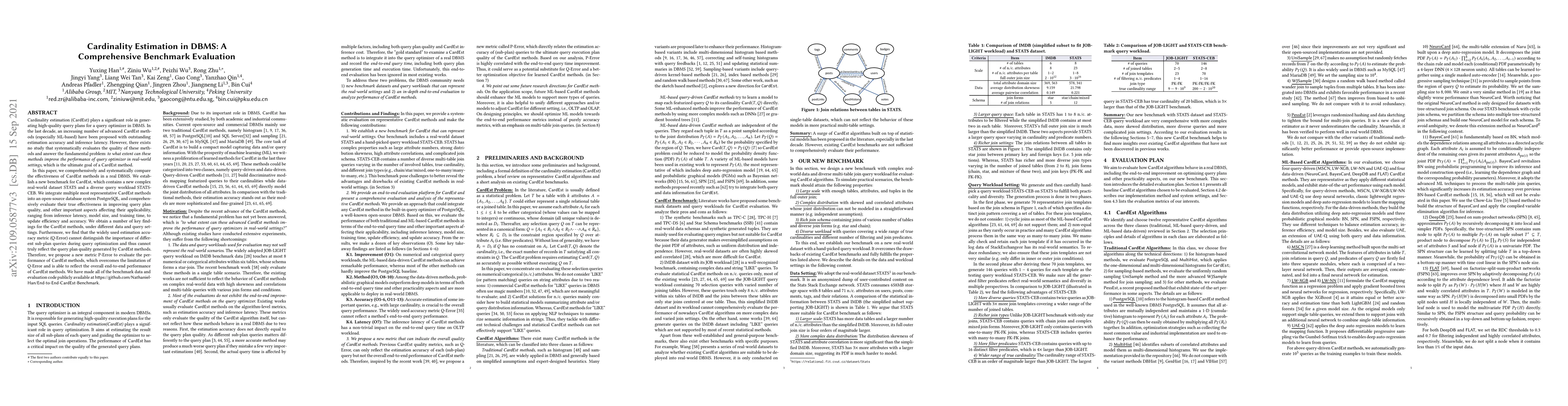 This paper evaluates the effectiveness of various cardinality estimation methods in a real-world DBMS setting, establishing a new benchmark with a complex dataset and diverse query workload. It finds that traditional accuracy metrics fail to reflect true query plan quality and proposes a new metric P-Error to better assess overall performance.