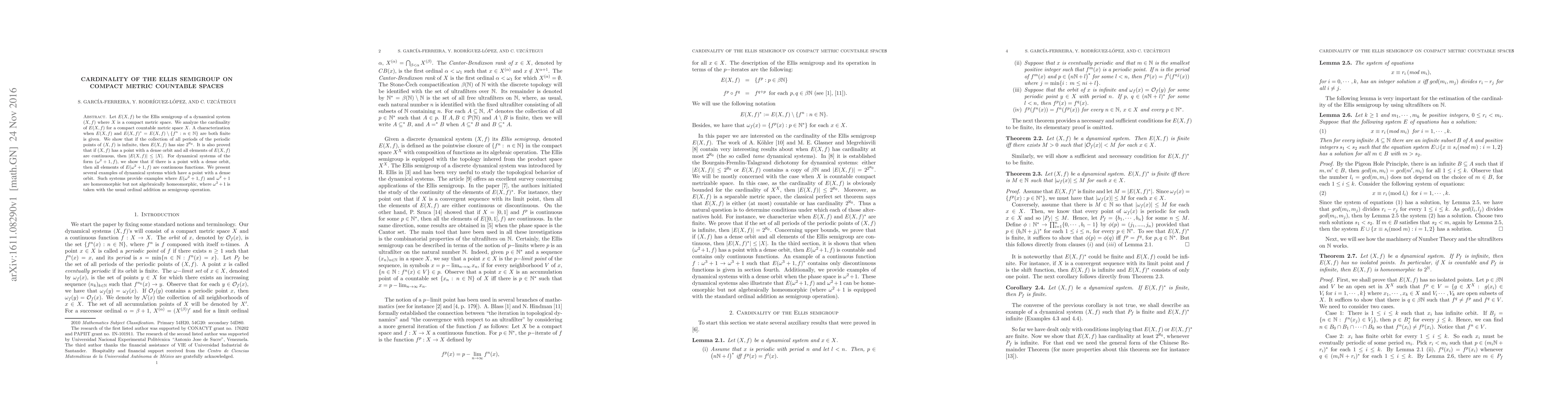 Let $E(X,f)$ be the Ellis semigroup of a dynamical system $(X,f)$ where $X$ is a compact metric space. We analyze the cardinality of $E(X,f)$ for a compact countable metric space $X$. A characterization when $E(X,f)$ and $E(X,f)^* = E(X,f) \setminus \{ f^n : n \in \mathbb{N}\}$ are both finite is given. We show that if the collection of all periods of the periodic points of $(X,f)$ is infinite, then $E(X,f)$ has size $2^{\aleph_0}$. It is also proved that if $(X,f)$ has a point with a dense orbit and all elements of $E(X,f)$ are continuous, then $|E(X,f)| \leq |X|$. For dynamical systems of the form $(\omega^2 +1,f)$, we show that if there is a point with a dense orbit, then all elements of $E(\omega^2+1,f)$ are continuous functions. We present several examples of dynamical systems which have a point with a dense orbit. Such systems provide examples where $E(\omega^2+1,f)$ and $\omega^2+1$ are homeomorphic but not algebraically homeomorphic, where $\omega^2+1$ is taken with the usual ordinal addition as semigroup operation.