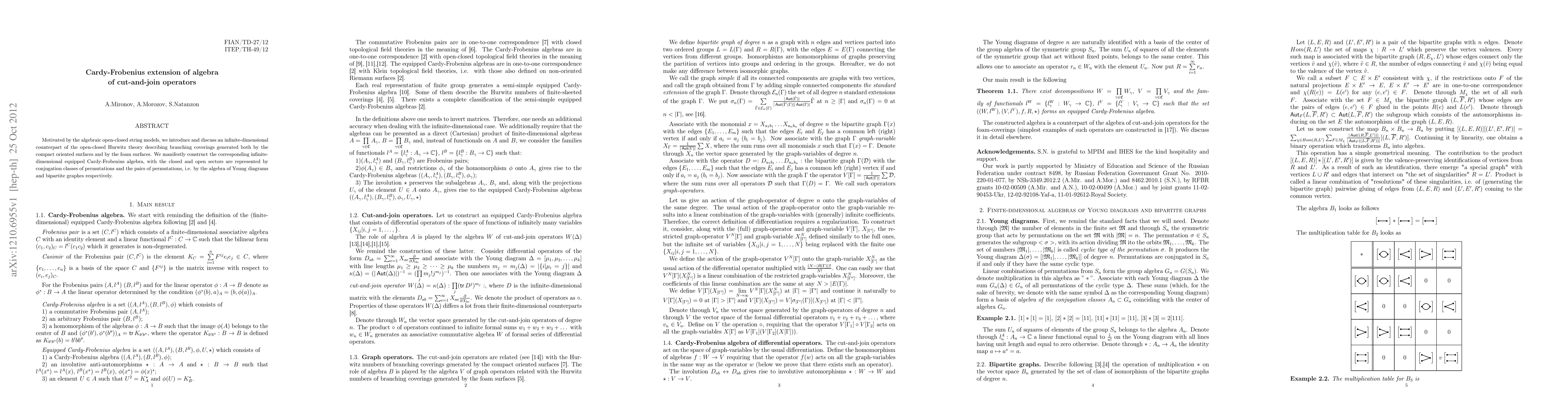 This paper constructs an infinite-dimensional Cardy-Frobenius algebra for open-closed string models, representing closed sectors by permutation classes and open sectors by pairs of permutations, analogous to Young diagrams and bipartite graphs. The focus is on branching coverings generated by both compact surfaces and foam surfaces.