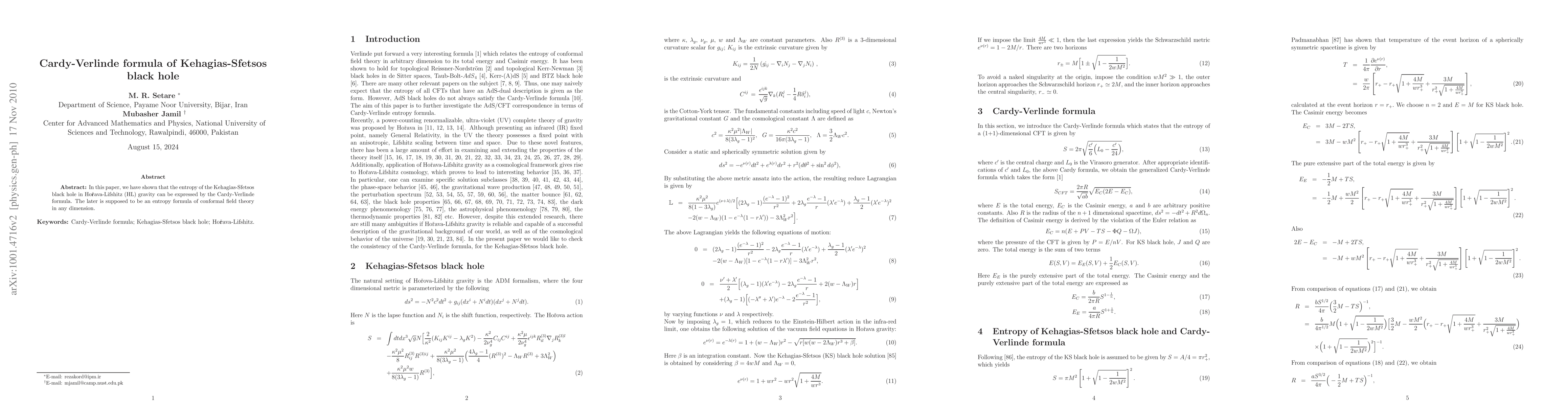 This paper demonstrates that the entropy of the Kehagias-Sfetsos black hole in Hořava-Lifshitz gravity aligns with the Cardy-Verlinde formula, traditionally used for entropy in conformal field theory across any dimension.
