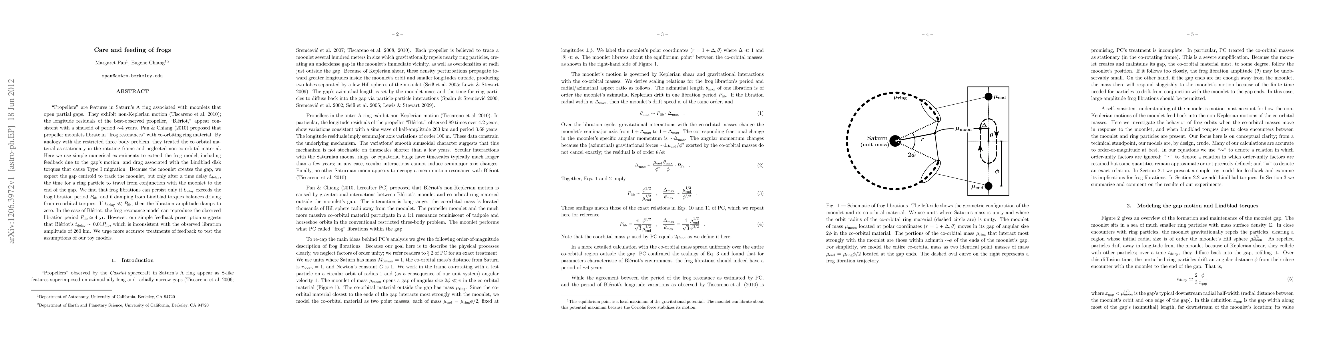 "Propellers" are features in Saturn's A ring associated with moonlets that open partial gaps. They exhibit non-Keplerian motion (Tiscareno 2010); the longitude residuals of the best-observed propeller, "Bl\'eriot," appear consistent with a sinusoid of period ~4 years. Pan and Chiang (2010) proposed that propeller moonlets librate in "frog resonances" with co-orbiting ring material. By analogy with the restricted three-body problem, they treated the co-orbital material as stationary in the rotating frame and neglected non-co-orbital material. Here we use simple numerical experiments to extend the frog model, including feedback due to the gap's motion, and drag associated with the Lindblad disk torques that cause Type I migration. Because the moonlet creates the gap, we expect the gap centroid to track the moonlet, but only after a time delay t_diff, the time for a ring particle to travel from conjunction with the moonlet to the end of the gap. We find that frog librations can persist only if t_diff exceeds the frog libration period P_lib, and if damping from Lindblad torques balances driving from co-orbital torques. If t_diff << P_lib, then the libration amplitude damps to zero. In the case of Bl\'eriot, the frog resonance model can reproduce the observed libration period P_lib ~ 4 yr. However, our simple feedback prescription suggests that Bl\'eriot's t_diff ~ 0.01P_lib, which is inconsistent with the observed libration amplitude of 260 km. We urge more accurate treatments of feedback to test the assumptions of our toy models.